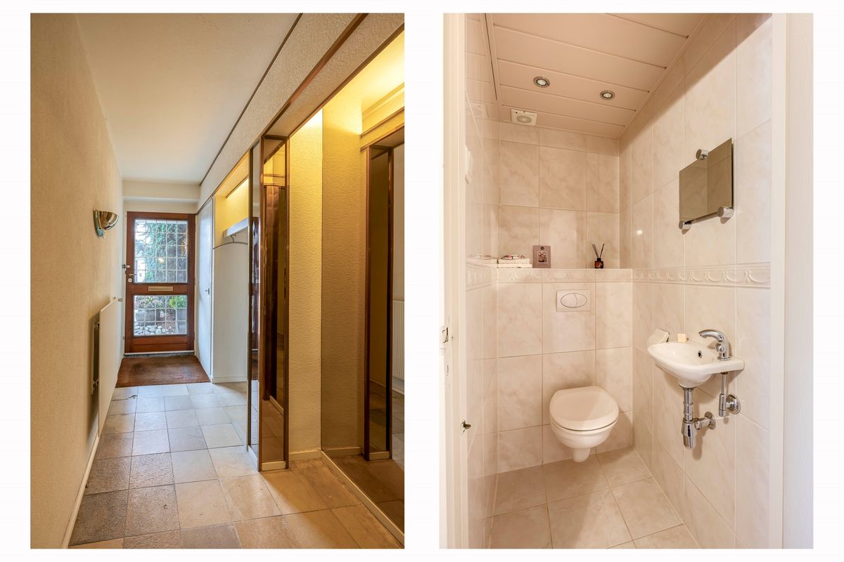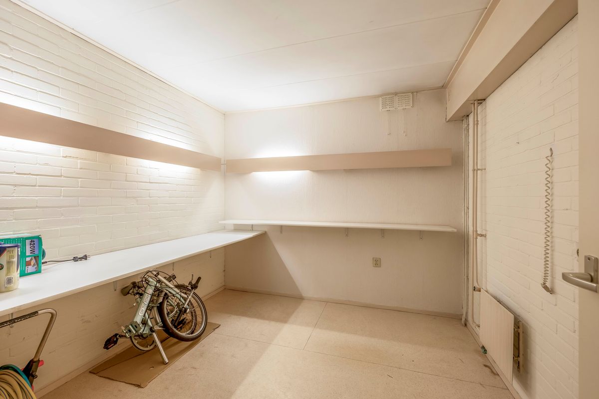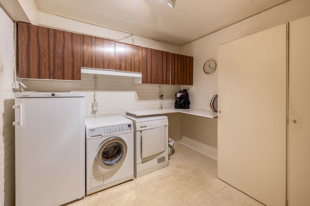 U komt binnen in een ruime entree met toegang tot de berging aan de rechterzijde, waar zich tevens de aansluitingen voor de wasmachine en droger bevinden. Aan de voorzijde bevindt zich een tweede, royale berging die eveneens uitstekend te gebruiken is als kantoor-, praktijk- of werkruimte aan huis. Een multifunctionele ruimte die zich eenvoudig aanpast aan uw woonwensen.