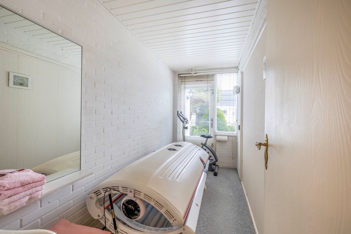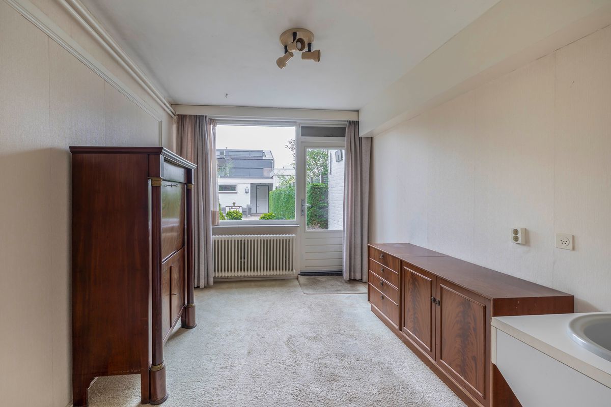 Verder vindt u op deze verdieping een apart toilet, praktische inbouwkasten en aan de achterzijde een slaapkamer met wastafelaansluiting en grote raampartijen met zicht op de tuin. Daarnaast is er nog een extra kamer die uitstekend geschikt is als werkplek, hobbykamer of kleedruimte en ook toegang biedt tot de achtertuin.