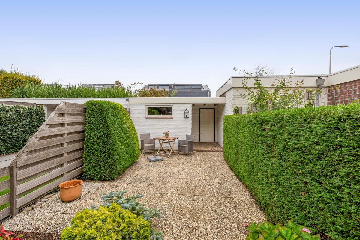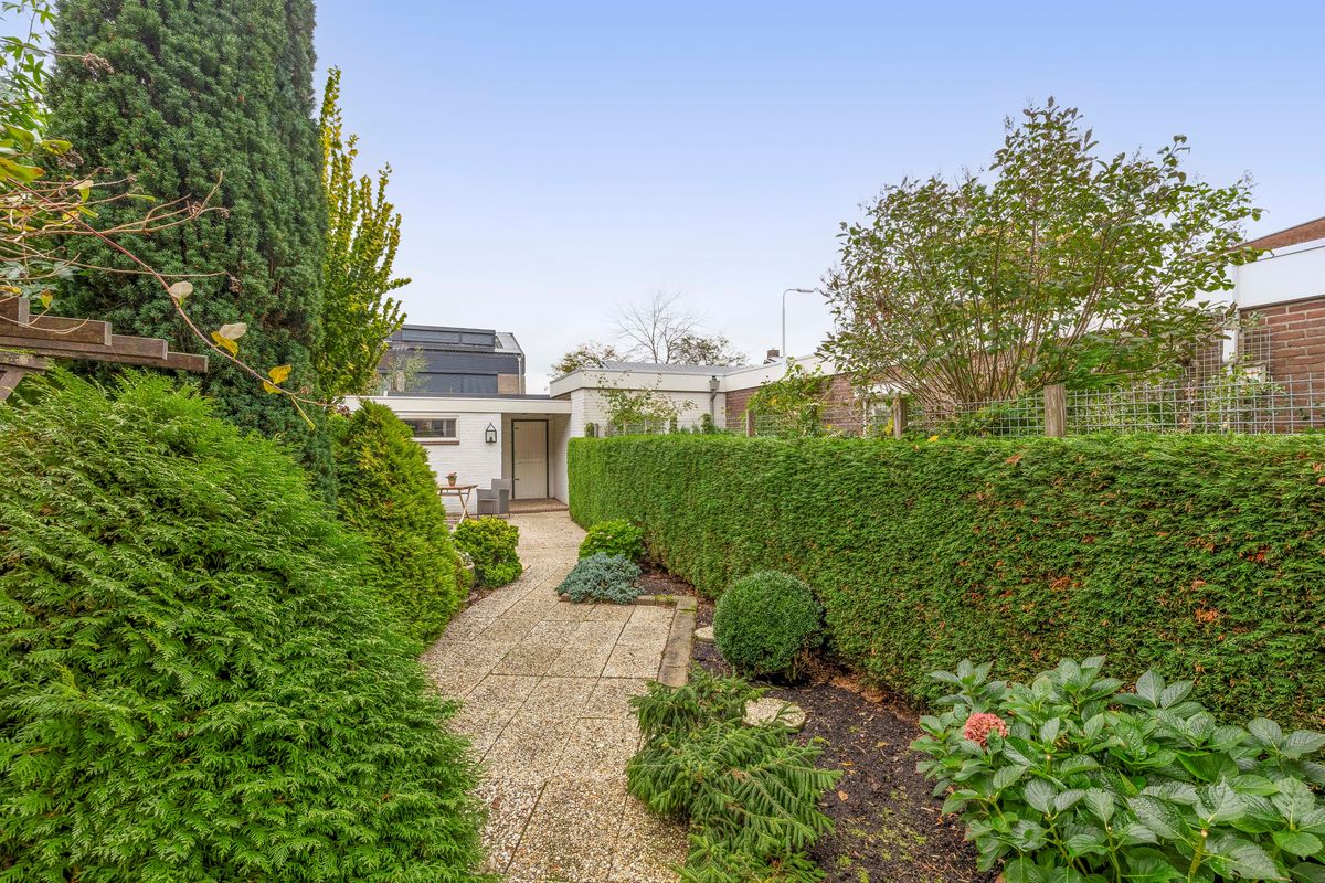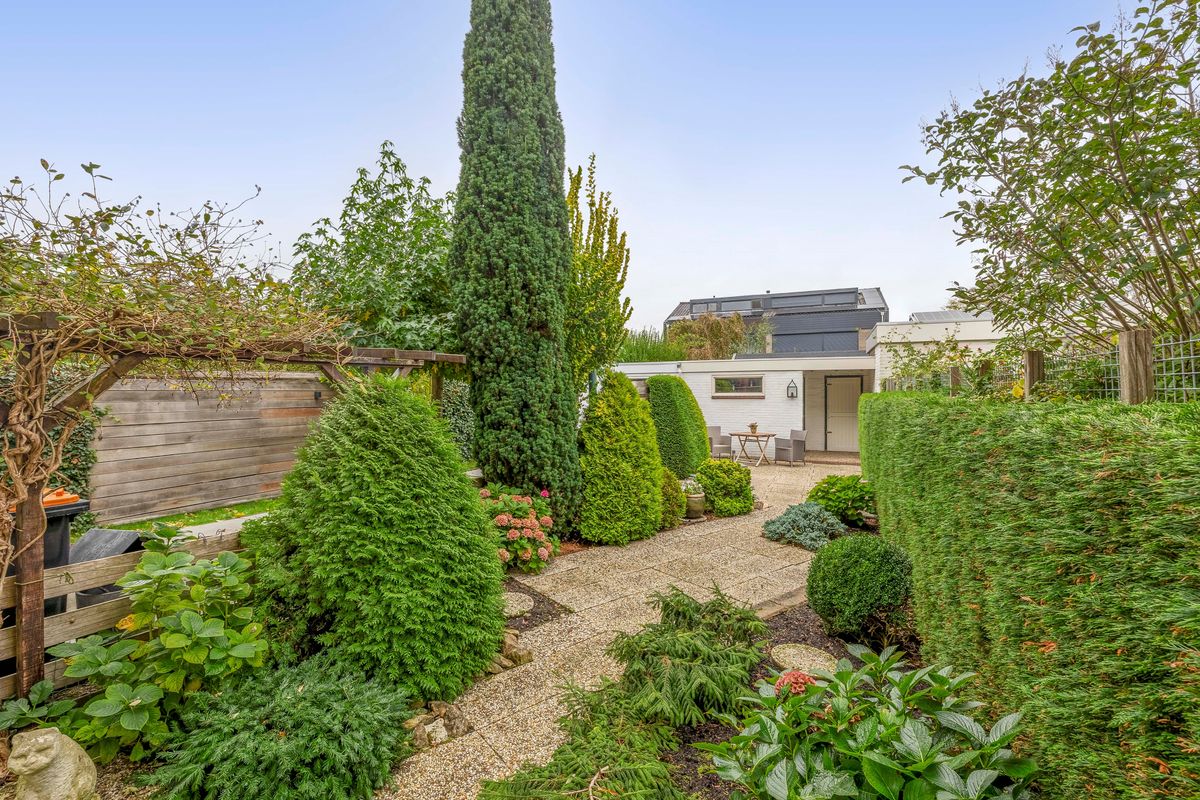 De woning beschikt over een diepe, groene tuin van circa 14,5 meter, gelegen op het noorden. Dankzij de royale diepte geniet u hier de hele dag door van zowel zon als schaduw. De tuin is verzorgd aangelegd met sierbestrating, volwassen beplanting en een strak onderhouden erfafscheiding, wat zorgt voor volop privacy en een groene uitstraling. Achterin de tuin bevindt zich een praktische stenen schuur, ideaal voor het stallen van fietsen of het opbergen van tuingereedschap. Ook is er een achterom aanwezig. Aan de voorzijde van de woning bevindt zich bovendien een oprit met parkeergelegenheid op eigen terrein, wat extra gemak en comfort biedt.