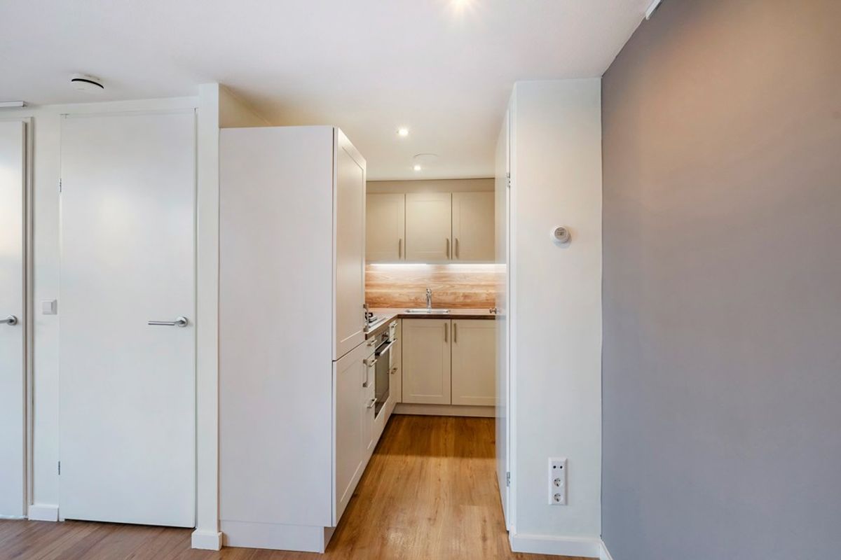 Wat opvalt: de nette afwerking, de stijlvolle laminaatvloer, verlaagd plafond met inbouwspots en het gevoel van ruimte en licht.