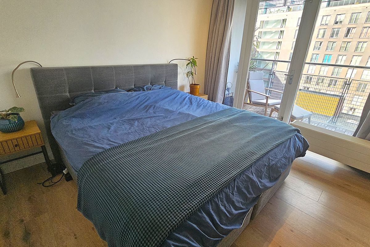 Het appartement beschikt over één ruime slaapkamer met een stijlvolle kastenwand en een aparte werk-/studeerkamer, ideaal voor thuiswerkers of logees. Beide kamers hebben toegang tot het balkon, zodat je ook daar kunt genieten van het uitzicht en de frisse buitenlucht.