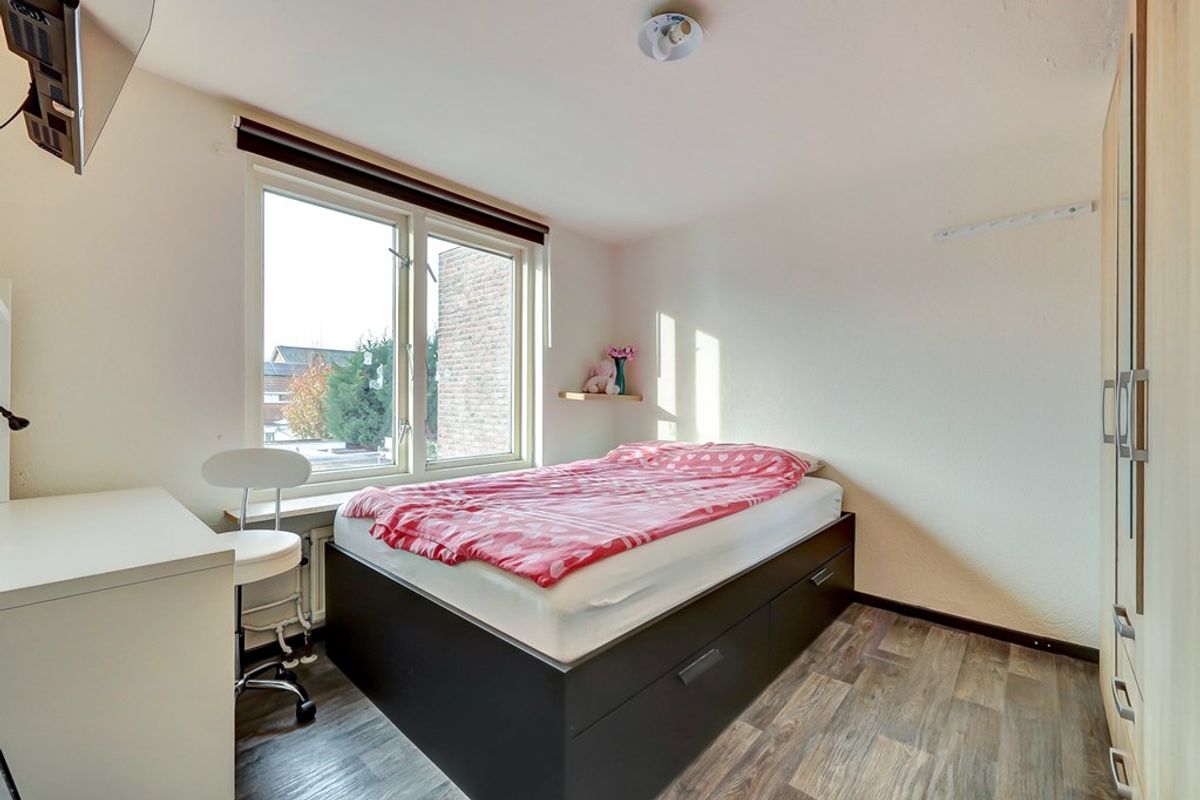 Vanaf de overloop bereik je drie fijne slaapkamers. Aan de voorzijde ligt een royale slaapkamer, terwijl aan de achterzijde nog twee kamers zijn gesitueerd. Deze twee kamers aan de achterzijde zijn uitgerust met rolluiken. De houten kozijnen zijn bovendien voorzien van HR-glas, wat bijdraagt aan het wooncomfort.