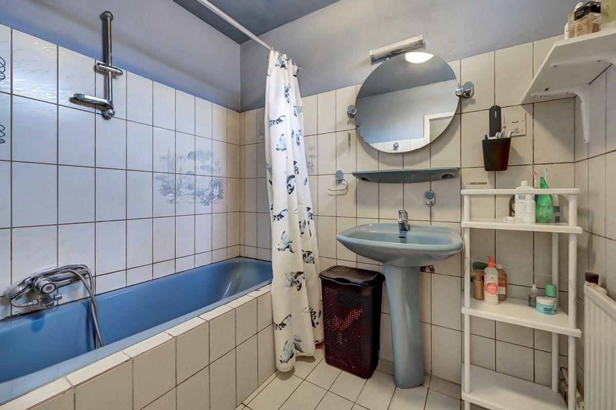 Vanuit de keuken bereik je de bijkeuken, waar de aansluitingen voor de wasmachine zijn geplaatst. Vanuit deze bijkeuken heb je toegang tot het toilet en de badkamer. De badkamer is voorzien van een ligbad met douche, een wastafel en een radiator.