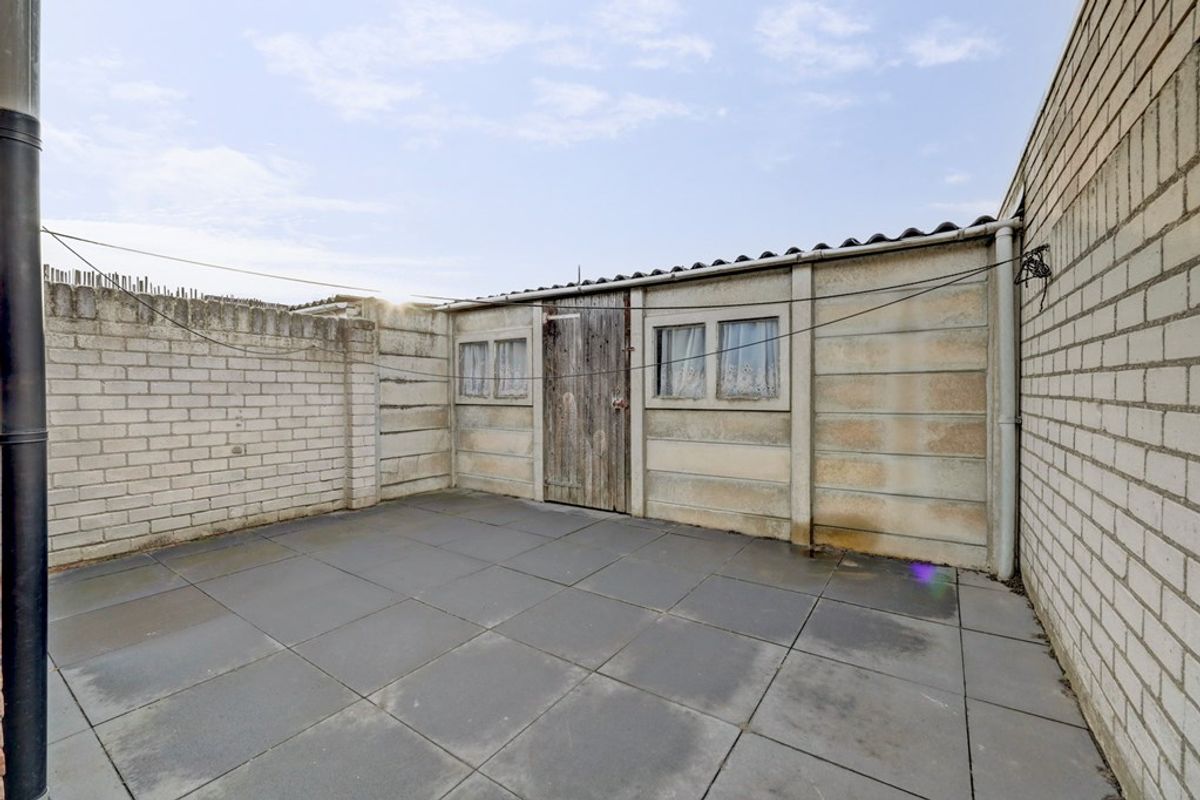 Vanuit buiten bereik je de aangebouwde extra berging met de CV-installatie. Deze ruimte is multifunctioneel te gebruiken, bijvoorbeeld als opslag of hobbyruimte.