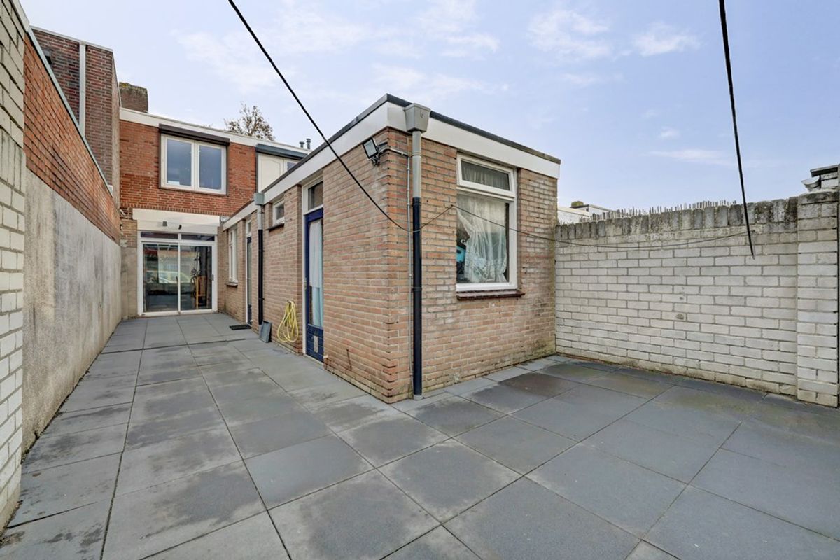De royale, onderhoudsvriendelijke achtertuin is volledig betegeld en heerlijk zonnig dankzij de ligging op het westen. Achterin staat een grote berging, ideaal voor fietsen, gereedschap of hobby’s. Via de berging heb je direct toegang tot de achterom.