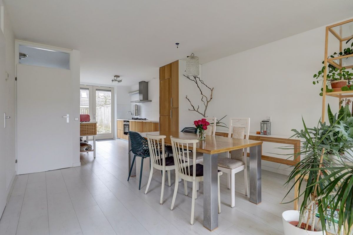 Entree met hal, meterkast, toilet met verwarmd fonteintje, trapopgang en doorloop naar deur met toegang naar achtertuin. Vanuit de hal komt u in de lichte woonkamer die is georiënteerd op de voorzijde. Vanuit hier heeft u een fraai uitzicht op het park aan de overzijde van de straat en is verder voorzien van een praktische trapkast en een laminaatvloer.