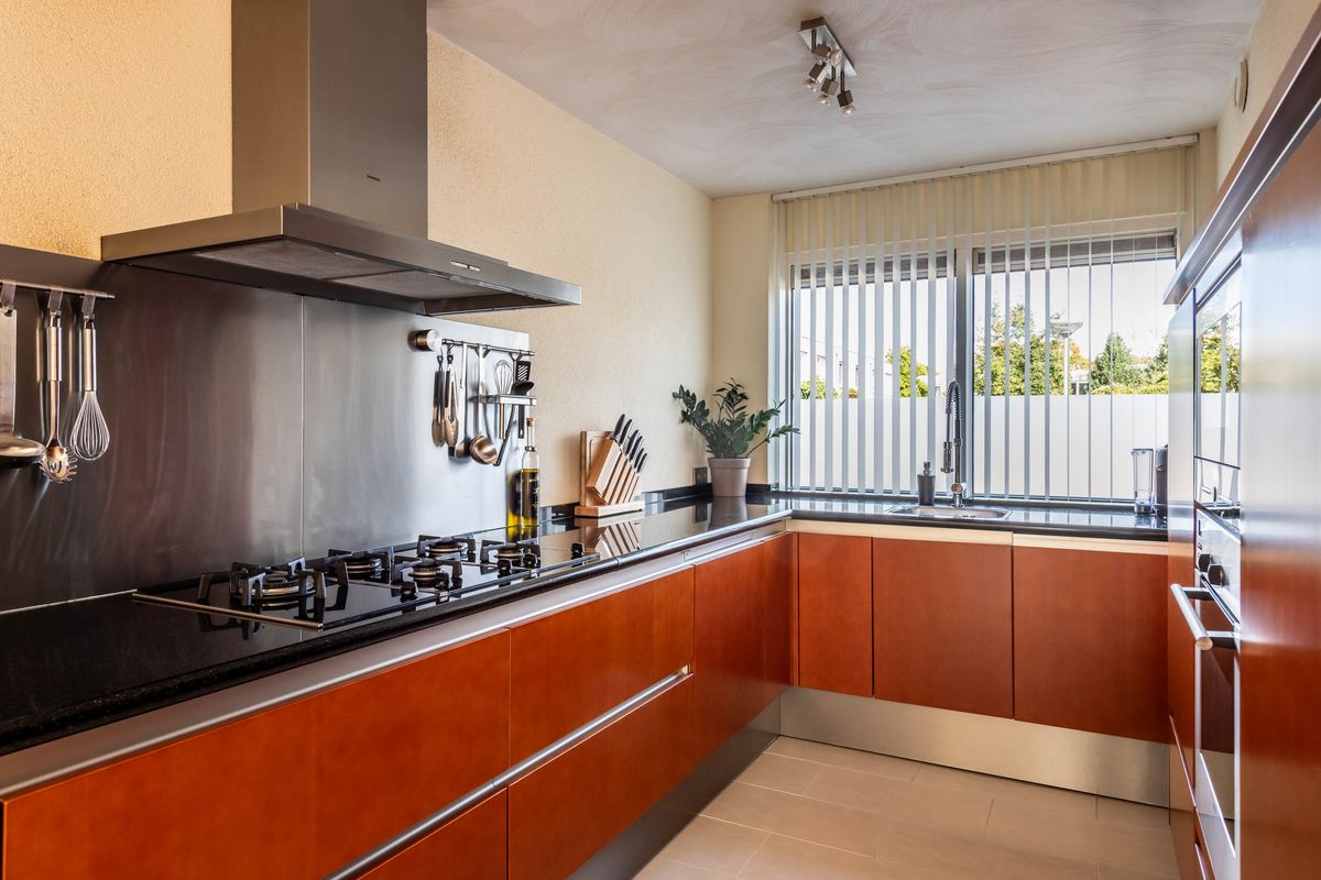 Voor de kookliefhebbers onder ons: de open keuken met inbouwapparatuur, zoals een 5-pits kookplaat, een afzuigkap, een magnetron, een oven, een vaatwasser, een koelkast en een vriezer maakt koken een heerlijke bezigheid. De vele kasten en lades zorgen voor voldoende opbergruimte voor al je keukengerei.