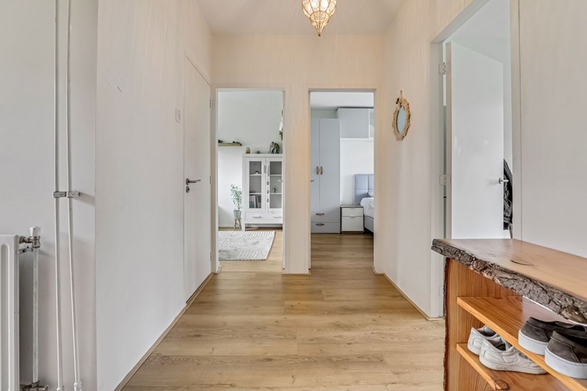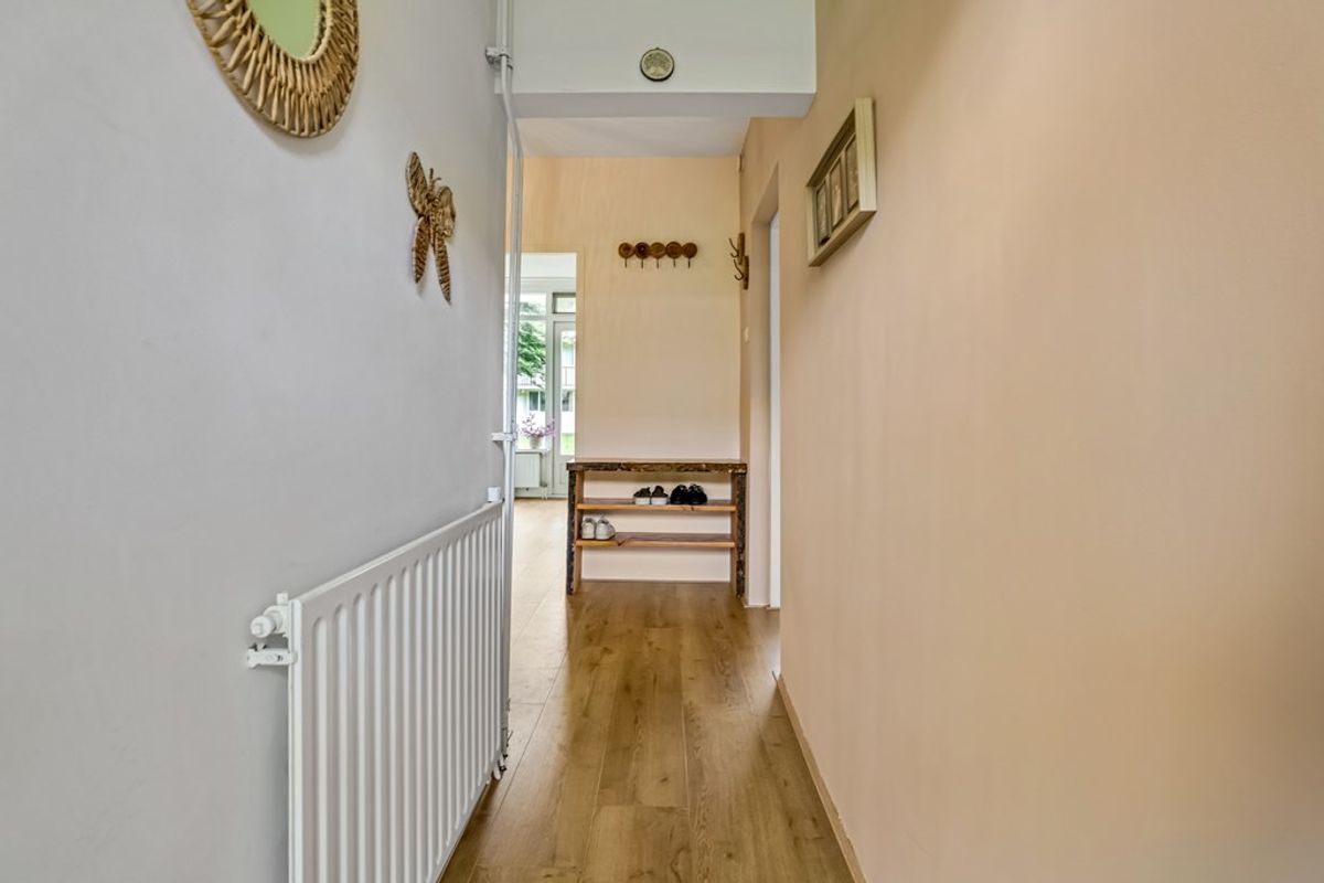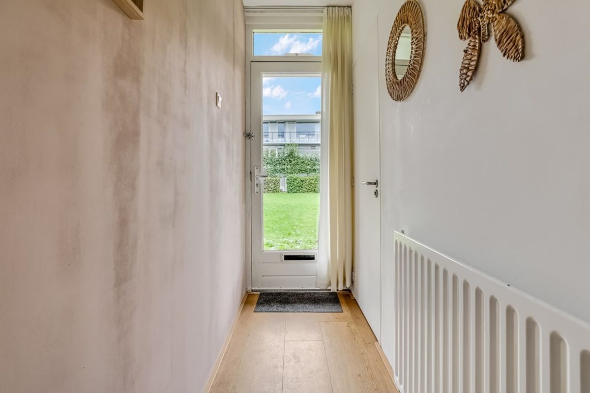 De entree aan de voorzijde van de woning geeft toegang tot de hal. Van hieruit is er toegang tot alle ruimtes, o.a. een separaat toilet, drie slaapkamers, de badkamer en de woonkamer. De lichte woonkamer staat in open verbinding met de L-vormige keuken (2023), die is voorzien van moderne inbouwapparatuur. Aansluitend bevindt zich een praktische bergkast met aansluitingen voor wasmachine en droger. Vrijwel de gehele woning is voorzien van een nette laminaatvloer.