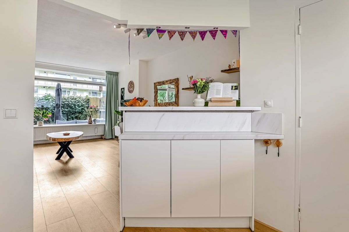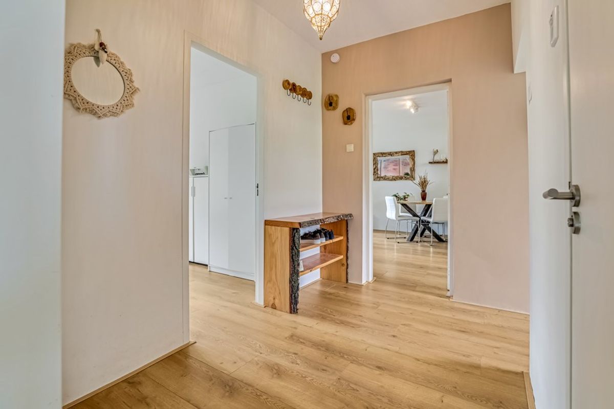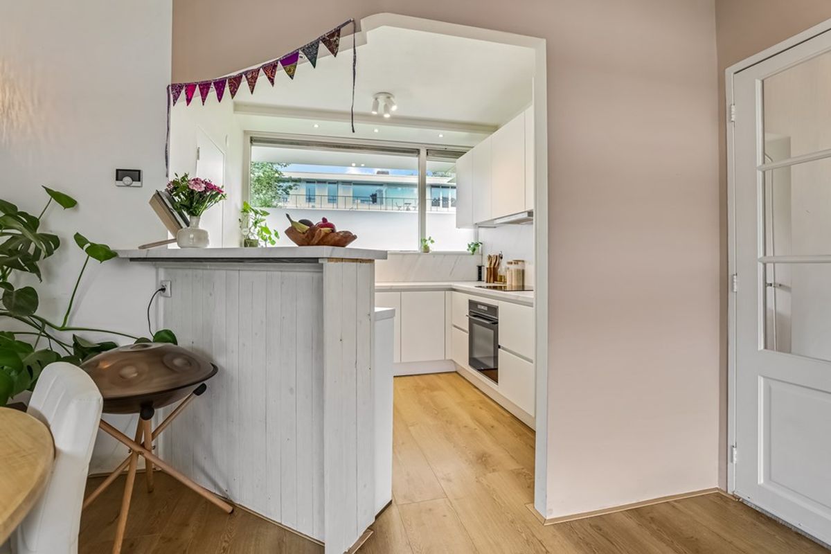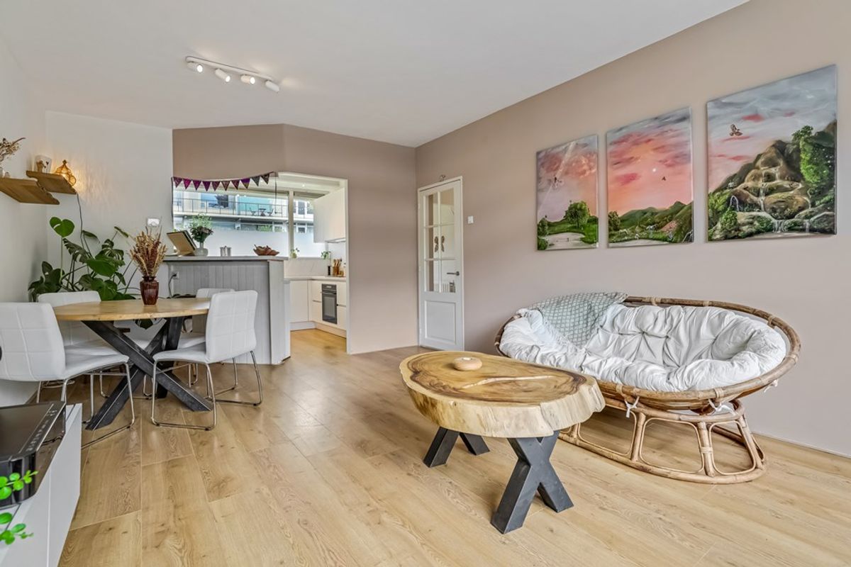 De entree aan de voorzijde van de woning geeft toegang tot de hal. Van hieruit is er toegang tot alle ruimtes, o.a. een separaat toilet, drie slaapkamers, de badkamer en de woonkamer. De lichte woonkamer staat in open verbinding met de L-vormige keuken (2023), die is voorzien van moderne inbouwapparatuur. Aansluitend bevindt zich een praktische bergkast met aansluitingen voor wasmachine en droger. Vrijwel de gehele woning is voorzien van een nette laminaatvloer.