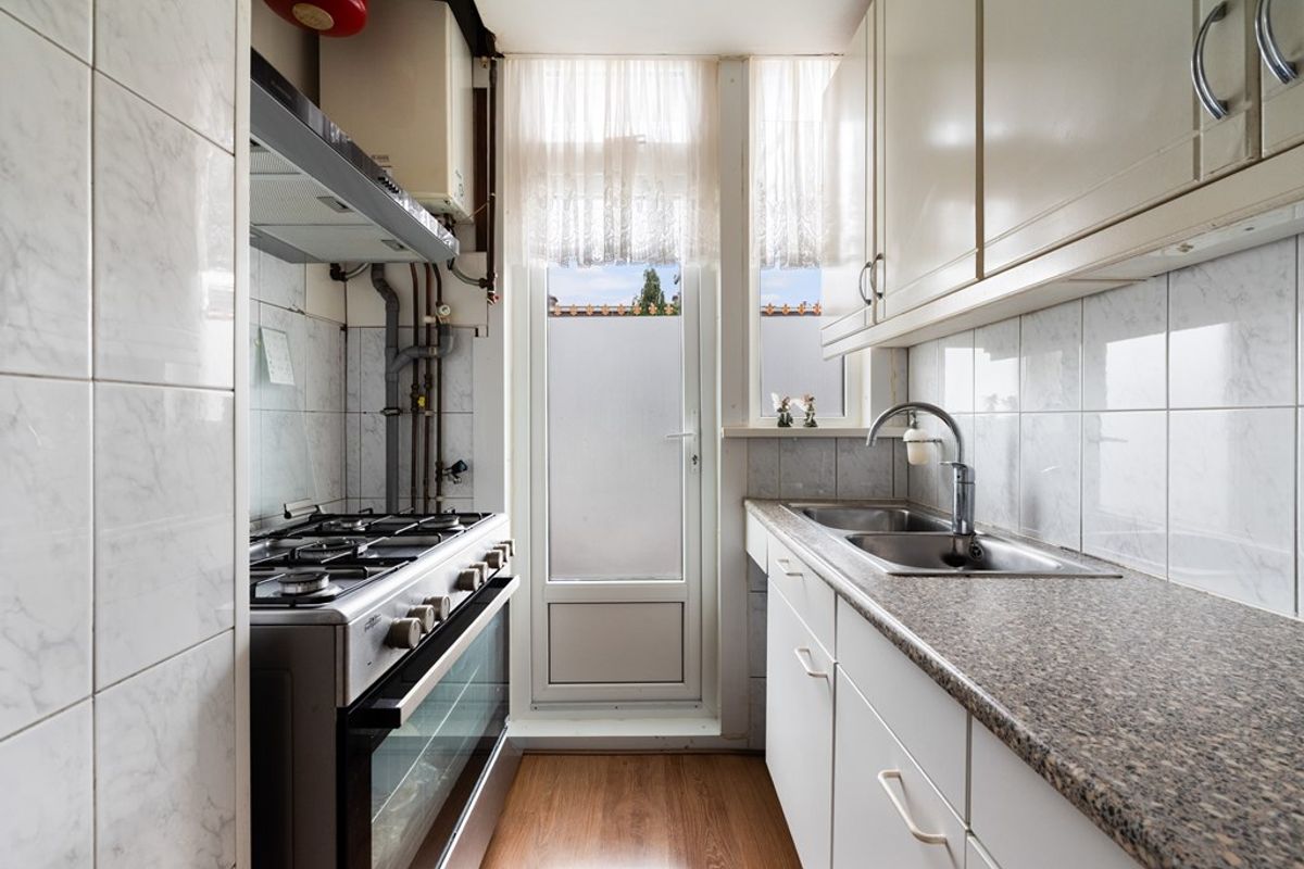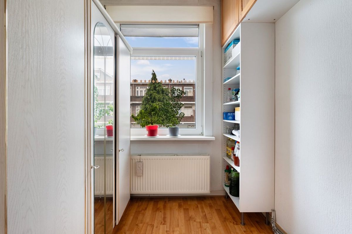 Vanuit de keuken is er direct toegang tot het balkon aan de achterzijde. Dit balkon biedt een fijne plek om buiten te zitten en beschikt daarnaast over een praktische balkonkast voor extra bergruimte.