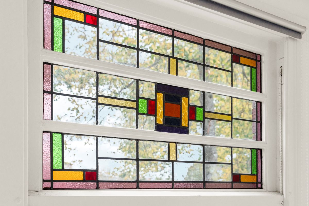 Entree appartement - U- vormige gang met vaste kast – meterkast - toegang tot slaapkamer (voorzijde) – hoek gelegen woonkamer met originele glas in lood bovenramen, gemetselde schouw, open keuken met inbouwapparatuur en toegang tot het balkon – nette badkamer met douche, wastafel in meubel, handdoekradiator, inbouwspots, wasmachine aansluiting en CV combiketel opstelling – slaapkamer (achterzijde) met toegang tot het balkon – separaat toilet – vaste kast – meterkast.
