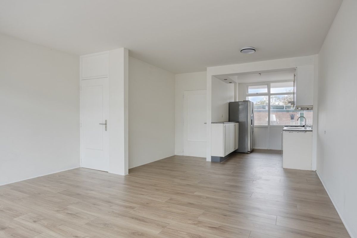 De ruime woonkamer valt direct op door de grote raampartijen die zorgen voor veel natuurlijk licht en een prettige, open sfeer. De half open keuken sluit hier naadloos op aan en biedt volop ruimte om samen te koken, te borrelen of te eten met familie en vrienden. Het appartement is een kluswoning. Momenteel moet de cv-installatie nog worden geïnstalleerd en is de badkamer niet aangesloten op het water.