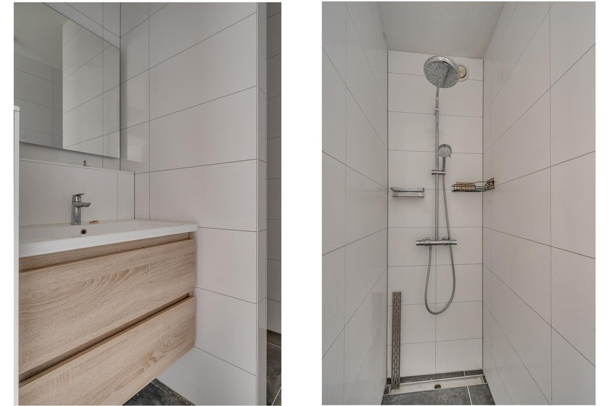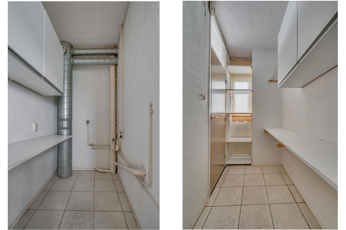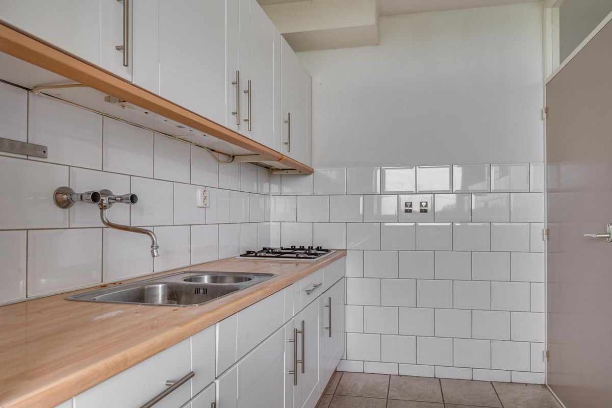 De keuken is aan de linkerzijde van het appartement gelegen en geeft toegang tot de berging/ bijkeuken waar de witgoedaansluitingen te vinden zijn. De keuken is ruim van opzet en voorzien van een tegelvloer, 4-pits gasfornuis, afzuigkap, spoelbak en veel opbergruimte. De toiletruimte is deels betegeld en voorzien van een zwevend toilet en fonteintje. De badkamer is recent vernieuwd en geheel betegeld en voorzien van een inloopdouche, wastafel met meubel en mechanische ventilatie.