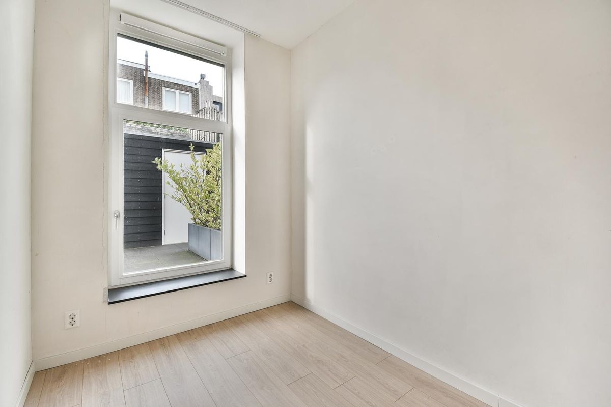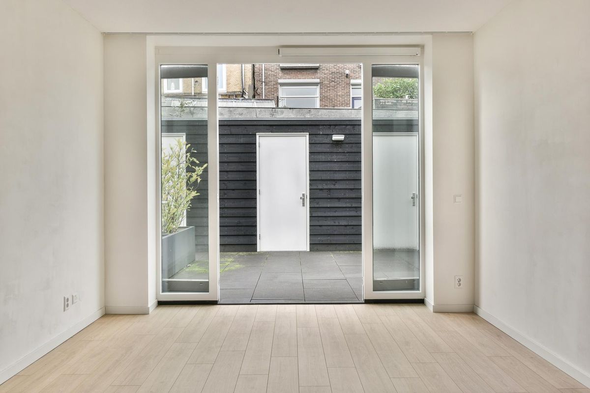 Via openslaande deuren vanuit de woonkamer is de achtertuin toegankelijk. De tuin is volledig betegeld en onderheid, ligt op het zuidwesten, de ideale ligging voor zonliefhebbers omdat hier de middag- en avondzon schijnt. Achter de tuin is er een eigen berging die ook toegangelijk is via een gemeenschappelijke maar afgesloten poort naast het complex.