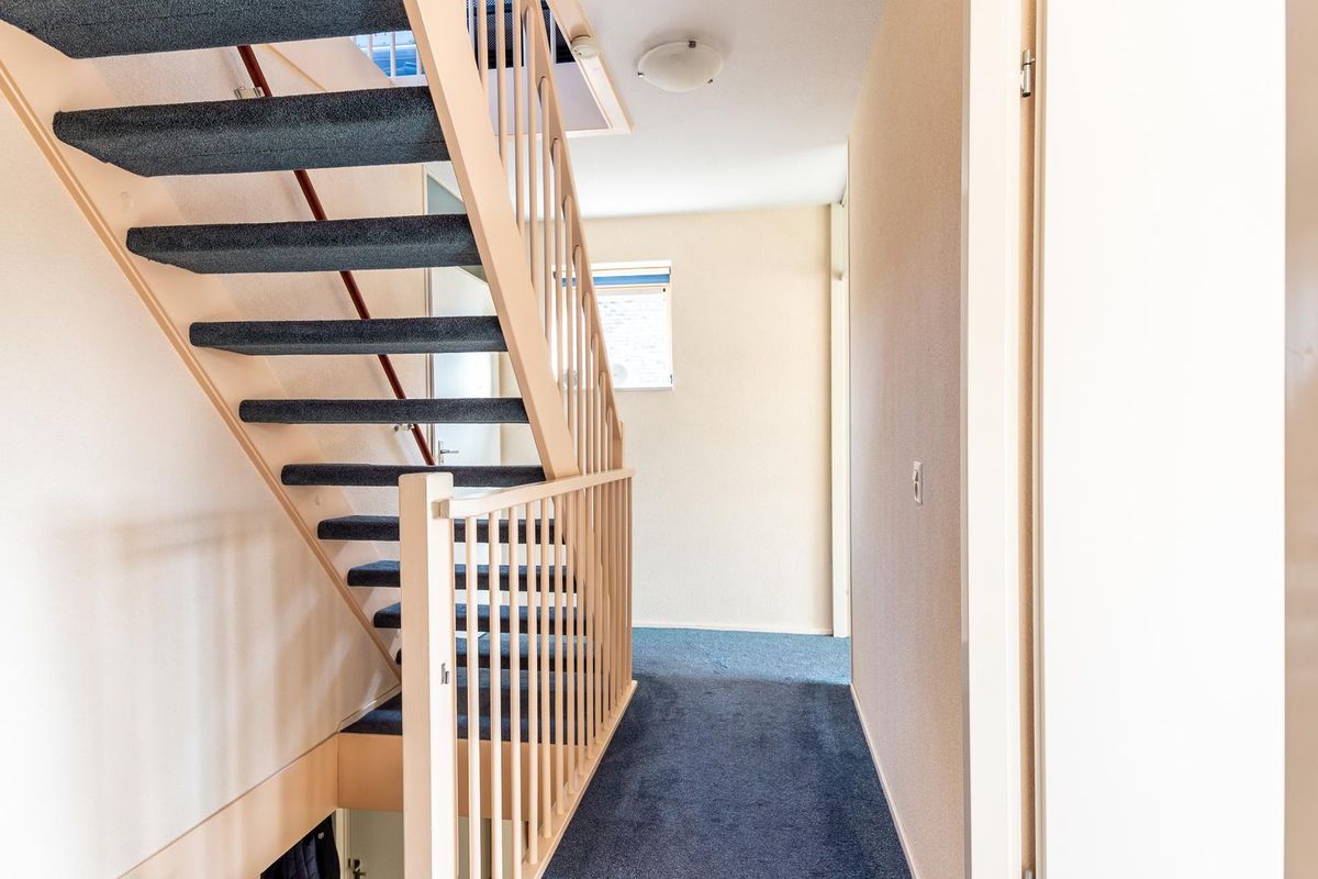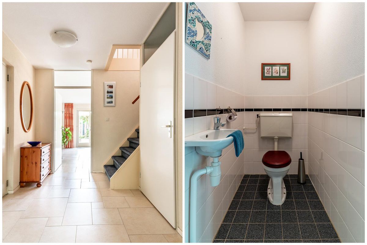 Bij aankomst valt direct de keurig vernieuwde voortuin (2020) op. Vanuit hier heb je niet alleen toegang tot de voordeur, maar ook tot de garage. Binnenkomend via de voordeur stap je de hal in, met toegang tot het toilet, de garage (ook van binnenuit bereikbaar) en de trapopgang naar de eerste verdieping.