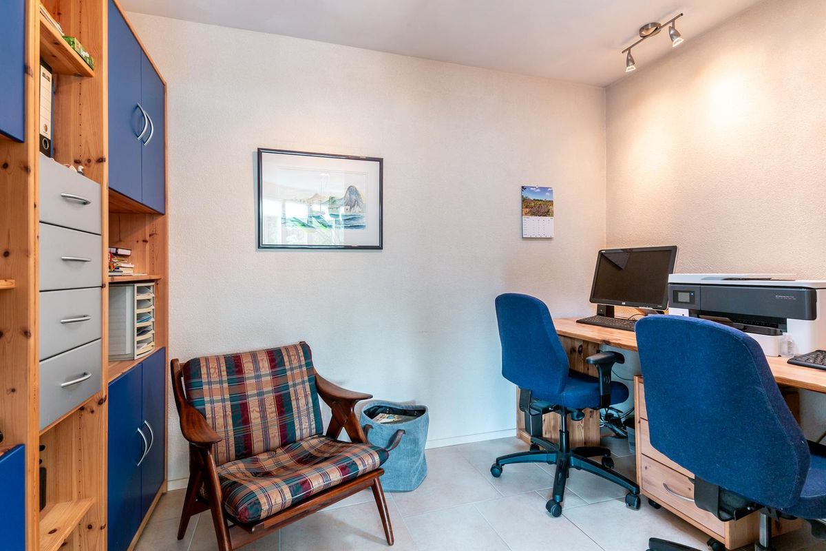 Daarnaast is er nog een praktische werkkamer, die bereikbaar is vanuit de woonkamer. Deze ruimte is ontstaan doordat de garage is opgesplitst in een werkruimte en een garage. Vanuit de hal bereik je de garage, en via de woonkamer stap je de werkkamer binnen. Ideaal als thuiskantoor, hobbyruimte of speelkamer.