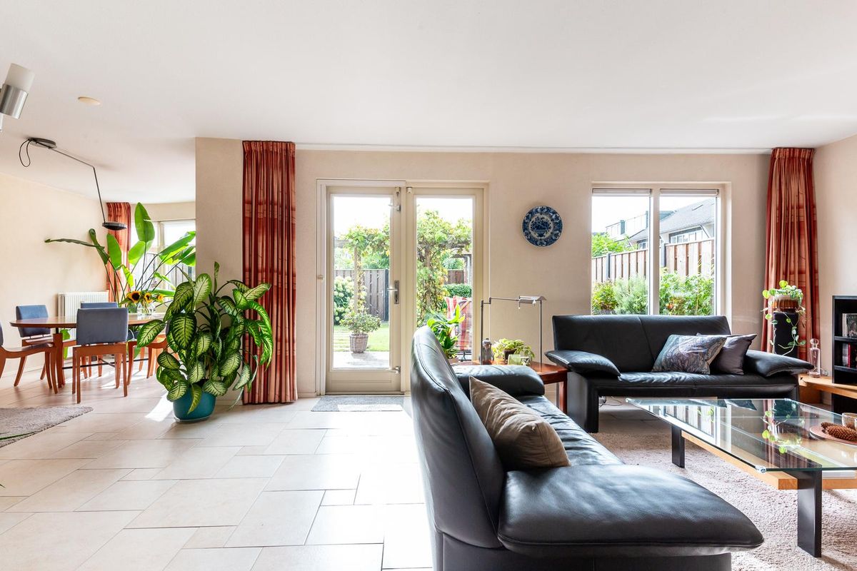 De woonkamer is ruim, licht en sfeervol. Dankzij de gezellige serre aan de achterzijde ontstaat er een perfecte plek voor een eettafel. Aan de achterzijde geniet je van een breed uitzicht over de royale achtertuin van ruim 100 m², eveneens vernieuwd in 2020. Deze is verzorgd aangelegd, beschikt over een vrijstaande houten berging en een achterom. Voor de warme zomerdagen is er een elektrisch zonnescherm (2016). Extra comfort wordt geboden door de vloerverwarming op de begane grond.