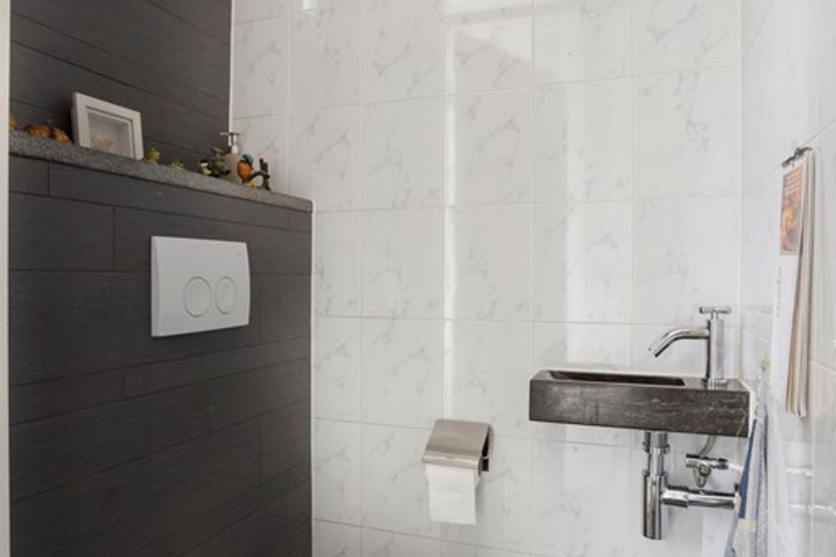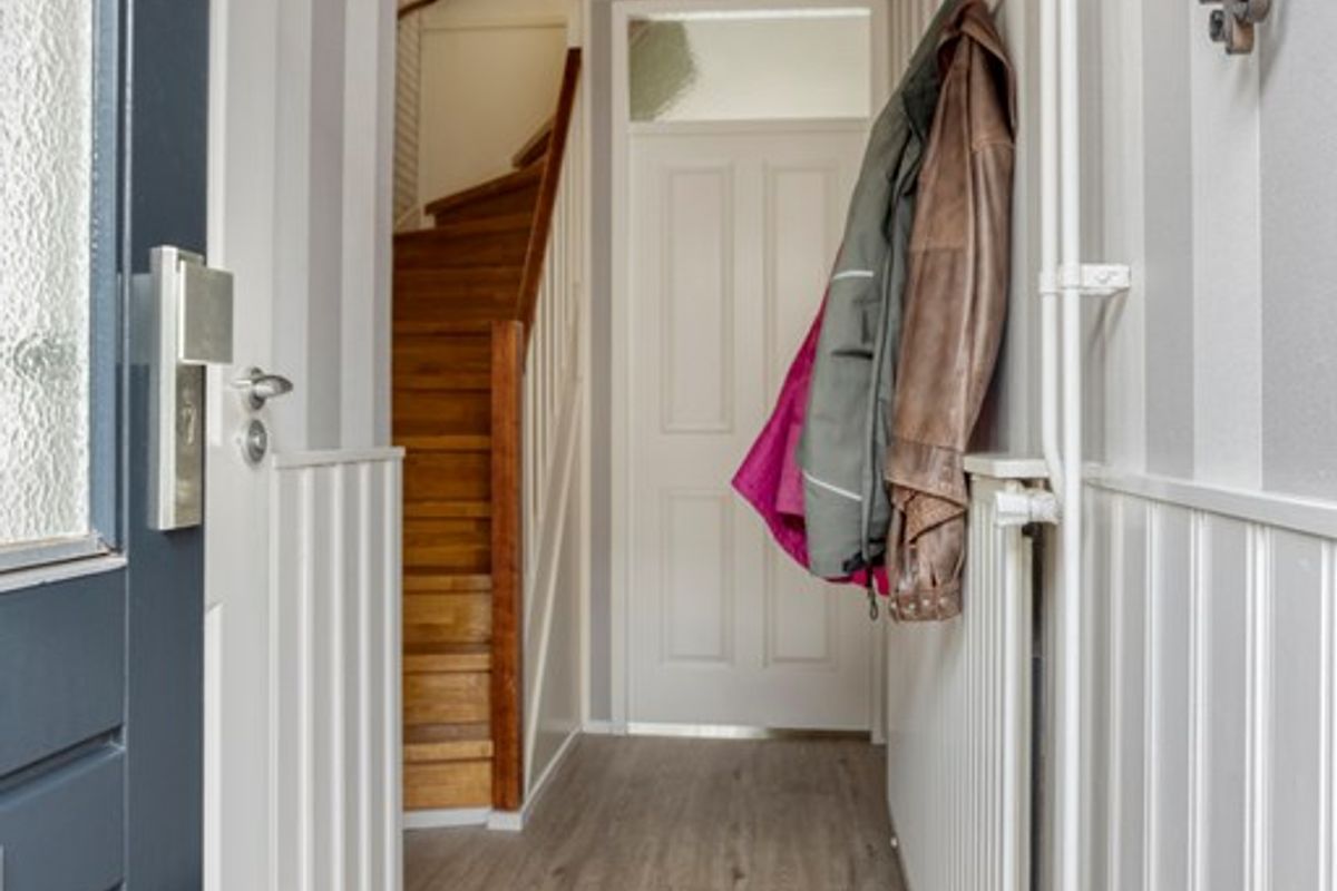 Via de eigen oprit bereikt u de entree van de woning, waar u tevens toegang heeft tot de praktische berging aan de voorzijde. Eenmaal binnen komt u in de hal, die toegang biedt tot de toiletruimte, de trap naar de eerste verdieping en de doorgang naar de woonkamer. De hal vormt een prettige binnenkomst met ruimte voor een kapstok of garderobekast, en geeft direct een verzorgde eerste indruk.