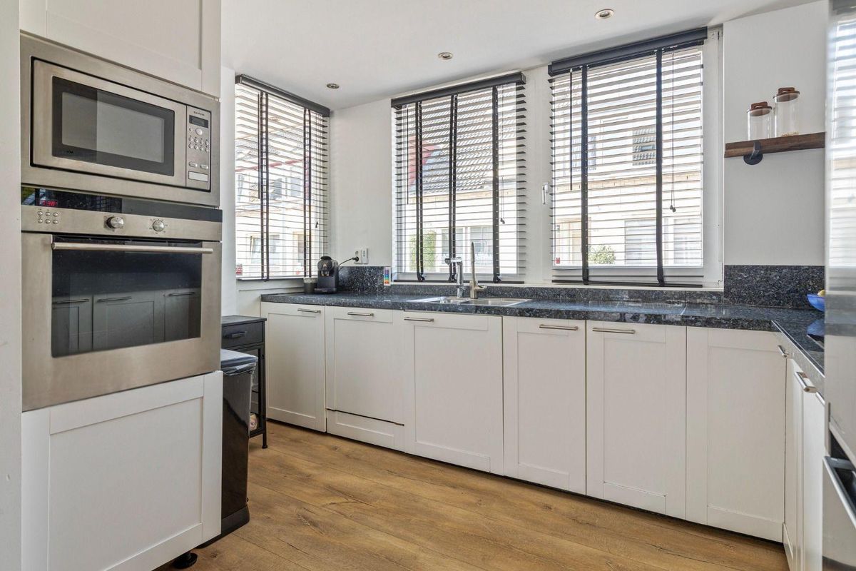 De overloop geeft toegang tot twee ruime slaapkamers en de moderne badkamer. Beide slaapkamers zijn licht en ruimtelijk dankzij de grote ramen. De badkamer is stijlvol uitgevoerd met een ligbad, inloopdouche, wastafelmeubel en een tweede toilet.