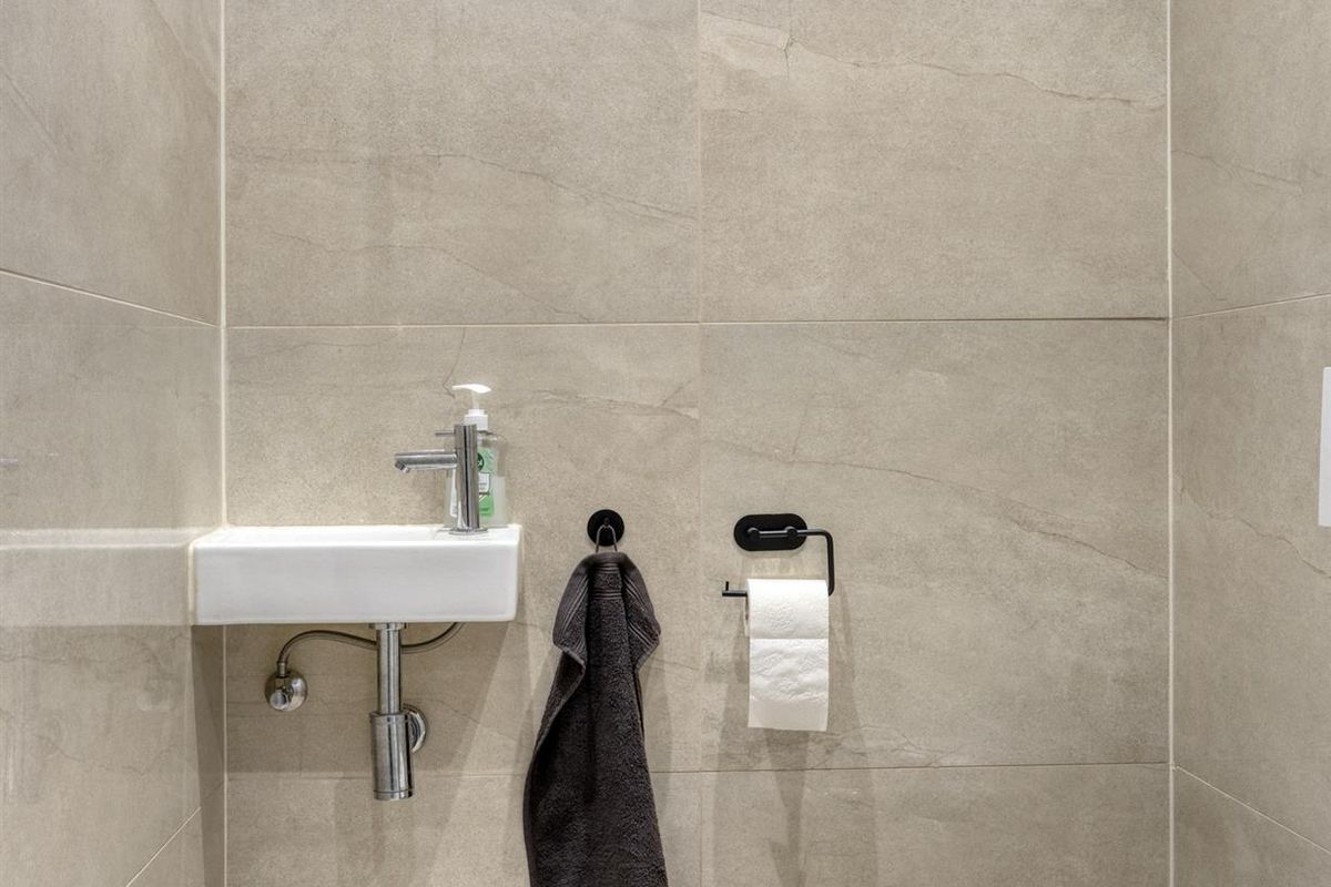 Overloop, drie ruime slaapkamers. De badkamer is volledig betegeld en voorzien van een wastafelmeubel, een verwarmde spiegel, handdoek radiator, zwevend toilet, bad en inloopdouche.