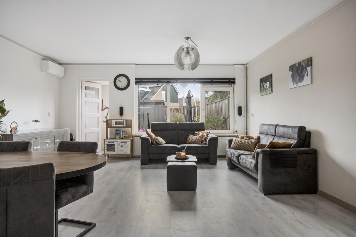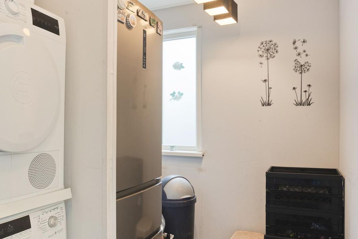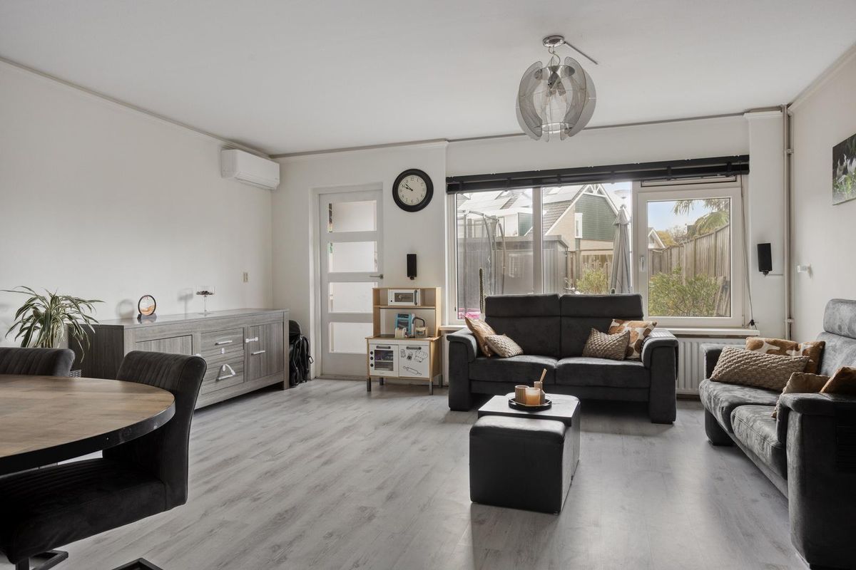 Entree/hal met vernieuwde meterkast, aan de voorzijde de bijkeuken met opstelling wasmachine/droger en bergruimte op de bergzolder. Trapopgang naar de eerste verdieping en toegang tot de woonkamer. Keukenruimte gelegen aan de voorzijde van de woning met nette wandopstelling, voorzien van o.a. 4-pits gas kookplaat en oven. Ruime woonkamer met nette laminaatvloer en wandafwerking, de woonkamer beschikt over airco (koelen + verwarmen). Aan de achterzijde halletje met enkele deur naar de zonnige achtertuin.