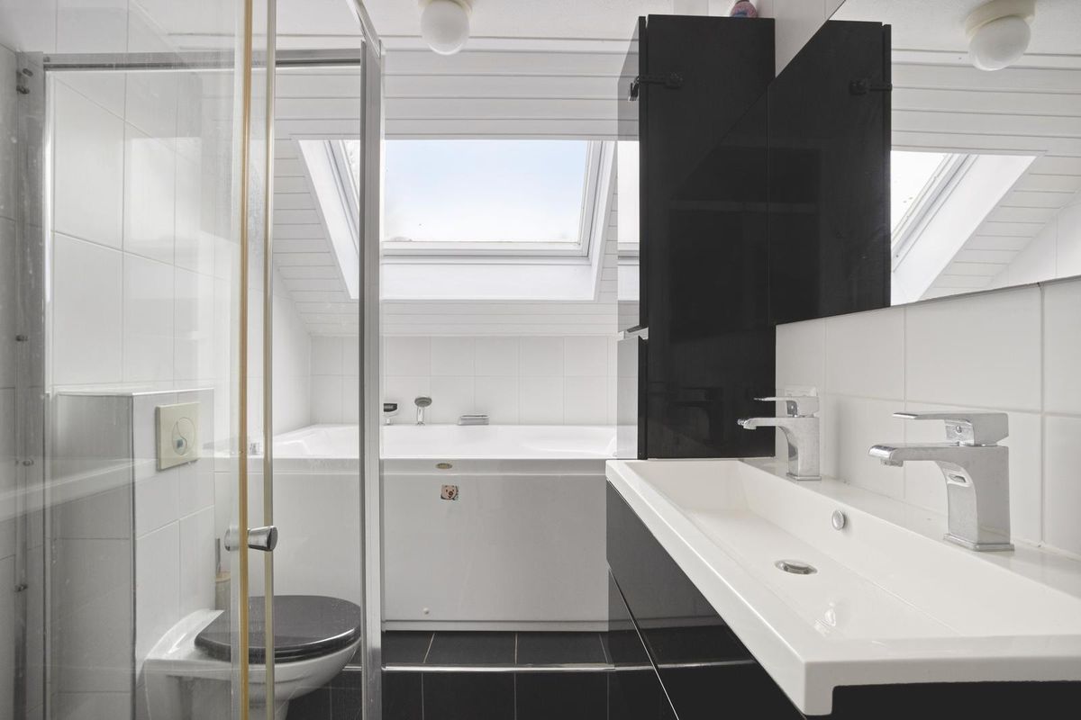 Overloop met bergkast en vaste trapopgang naar de tweede verdieping. Nette badkamer gelegen aan de voorzijde van de woning met groot ligbad, inloopdouche, dubbele wastafel en hangend toilet, de badkamer is voorzien van groot dakraam. Verder zijn er op deze verdieping 3 ruime slaapkamers allen afgewerkt met nette laminaatvloer.