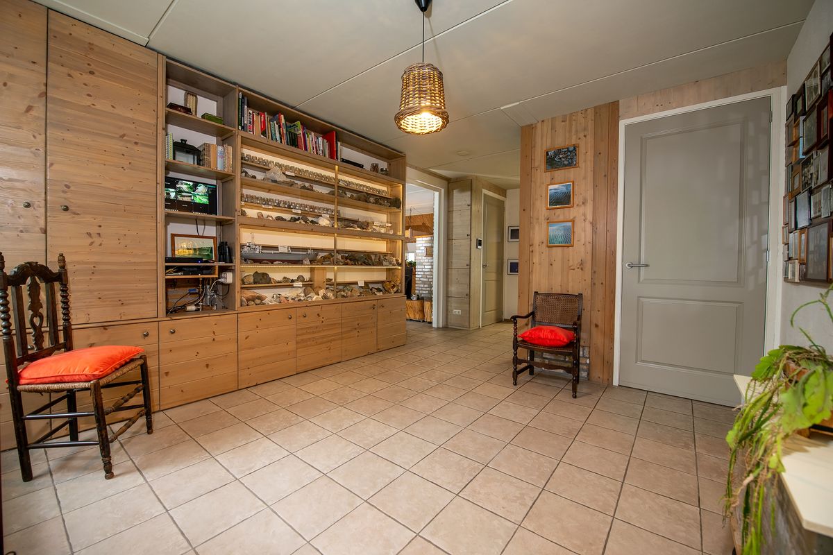 In de enorme hal bevinden zich het toilet, de entree naar de kelder, de entree naar de woonkeuken en de kasten met de accu’s en apparatuur voor opslag energie.