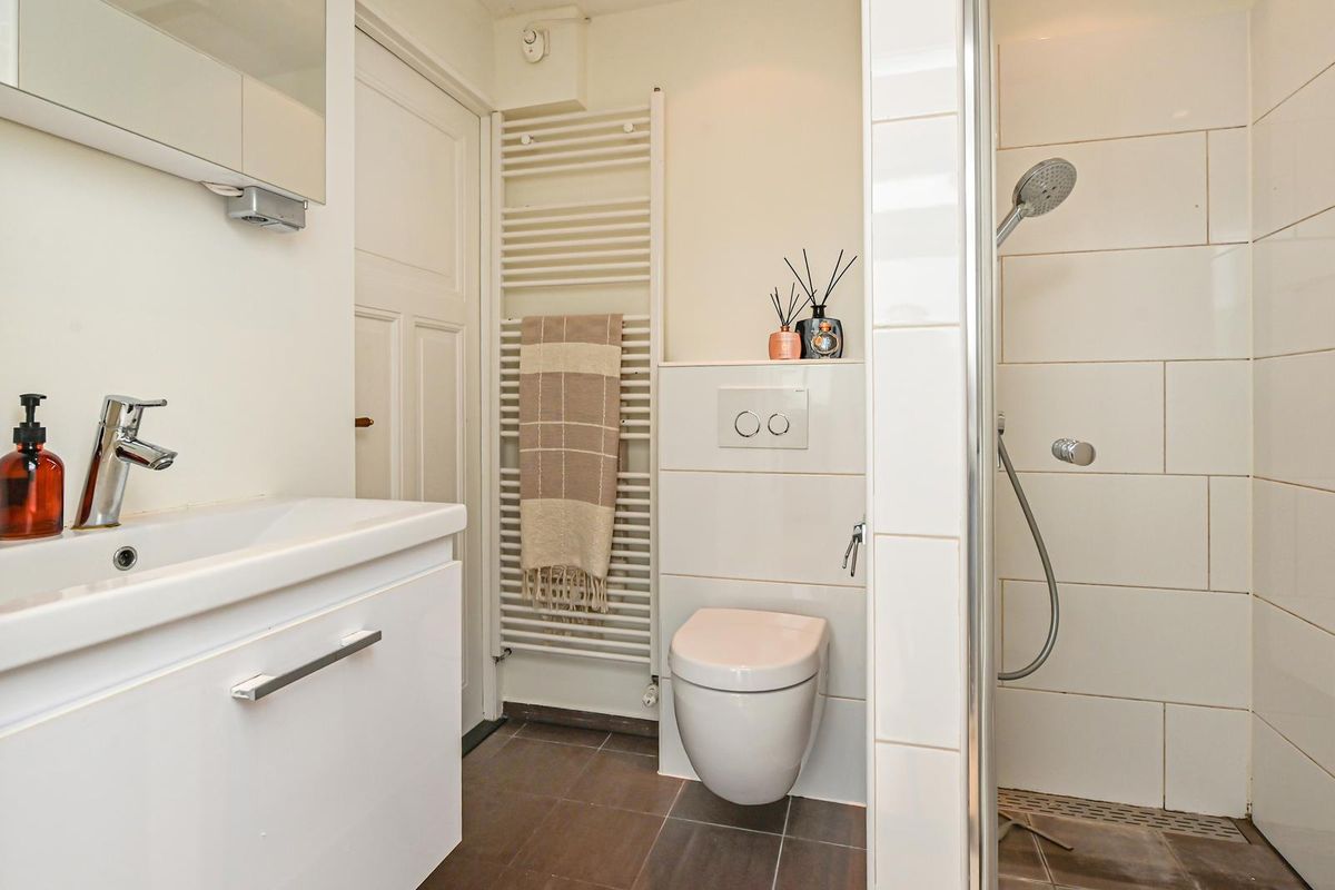 De hoofdslaapkamer ligt aan de voorzijde. Daarnaast is er een tweede (slaap)kamer met eveneens toegang tot het balkon. De moderne badkamer is voorzien van een hangend toilet, ruime douche en wastafel.
