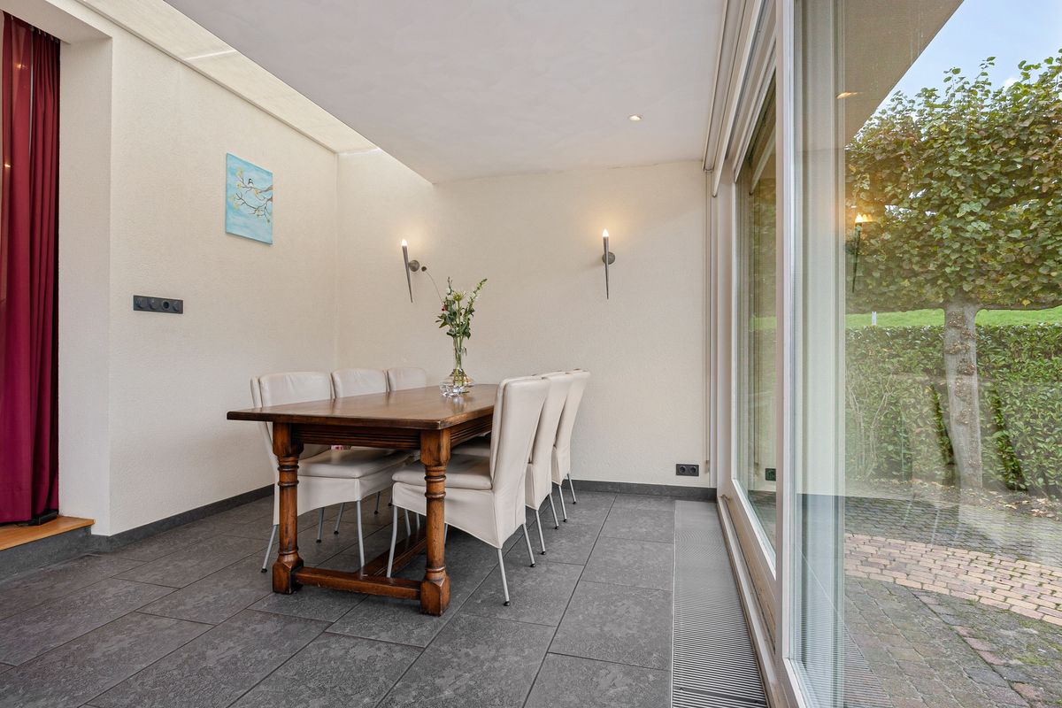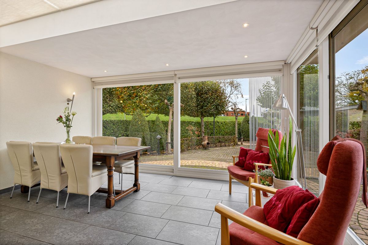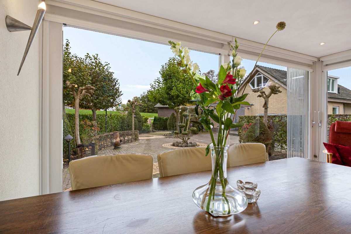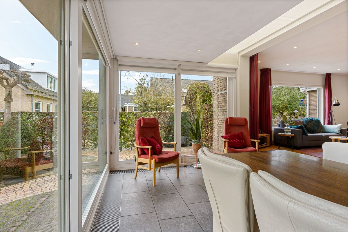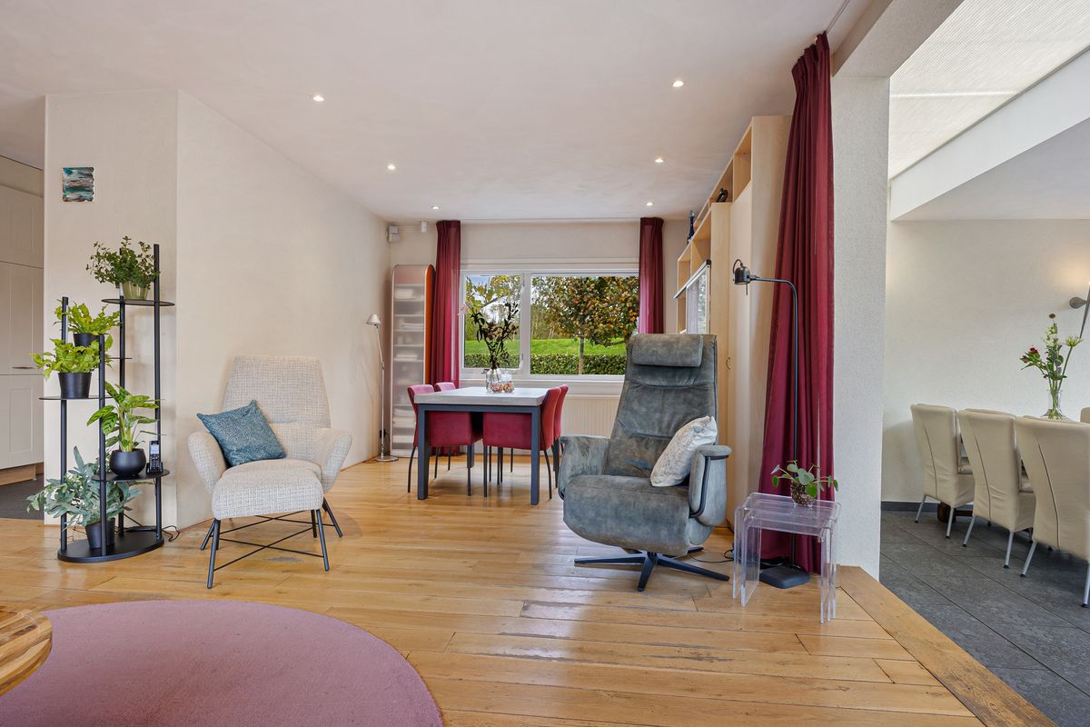 De meeste leefruimte van deze vrijstaande bungalow bevindt zich op de begane grond. Vanuit de entree stap je de royale hal in, met trapopgang, moderne toiletruimte met fonteintje, en een nieuwe meterkast met 14 groepen. Aan de rechterzijde bereik je de heerlijk lichte woonkamer. Hier is, door de uitbouw met twee grote glazen schuifpuien met elektrische zonneschermen, alle ruimte voor een royale zit en een grote eethoek. De half open keuken is aan beide wanden opgesteld en is voorzien van een granieten blad. In de keuken zijn een inbouwkoelkast, apothekerskast, quooker, vaatwasser, oven/magnetron en 4-pits inductiekookplaat te vinden. Vanuit de keuken bereik je de aangebouwde bijkeuken met aansluiting voor wasmachine en droger. Een loopdeur biedt toegang tot de tuin.