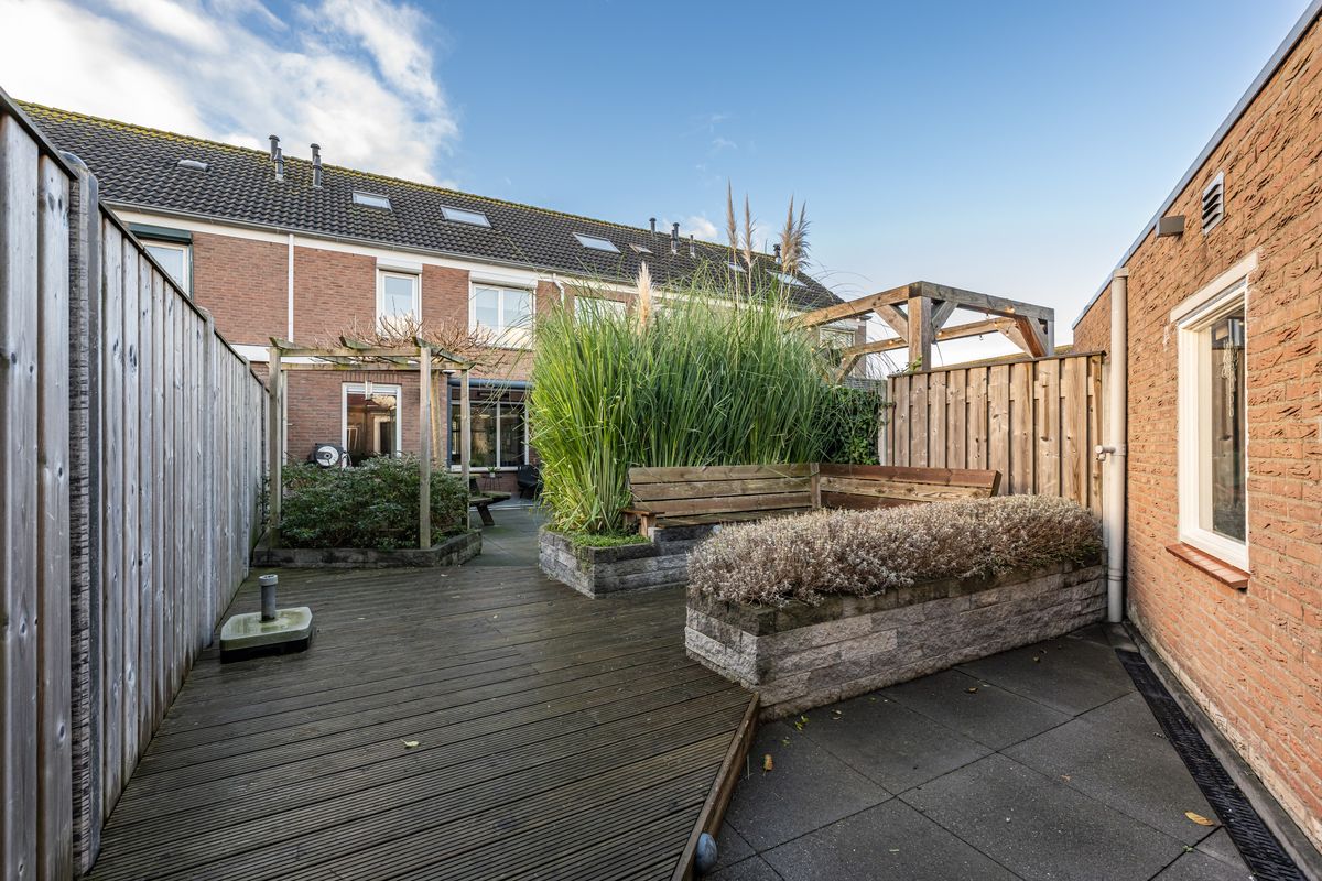 De woning beschikt over 156m² eigen grond, waardoor u profiteert van een fijne buitenruimte zonder dat het onderhoud u zal overweldigen. Aan de achterzijde is bovendien een praktische bijkeuken aangebouwd, ideaal voor extra opslag, het plaatsen van uw witgoedapparatuur of het netjes opbergen van spullen die u niet dagelijks nodig heeft. Aansluitend vindt u een sfeervolle serre, waar u het hele jaar door van het daglicht en de tuin kunt genieten. Dit is dé plek voor een ontspannen kop koffie, een gezellige borrel met vrienden of een rustige werkplek met uitzicht op het groen.