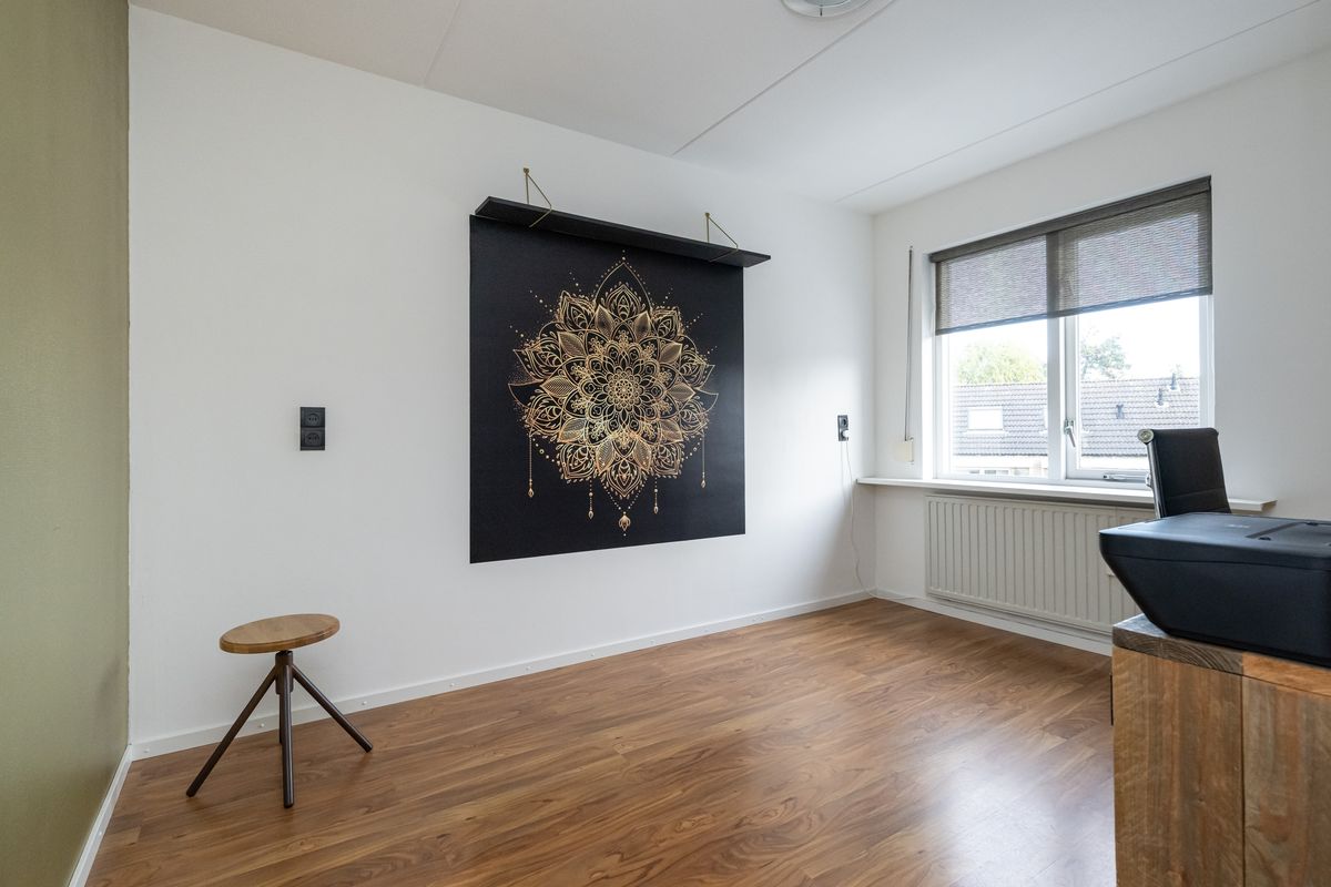 Binnen beschikt de woning over vier slaapkamers, waarvan drie op de eerste verdieping en een ruime vierde kamer op de tweede verdieping. Deze indeling maakt de woning zeer geschikt voor gezinnen, thuiswerkers of iedereen die simpelweg extra ruimte waardeert. De bad- en slaapkamers op de eerste verdieping zijn voorzien van rolluiken, waardoor u profiteert van optimale privacy, lichtregeling en extra isolatie. Een goede nachtrust is hier gegarandeerd.