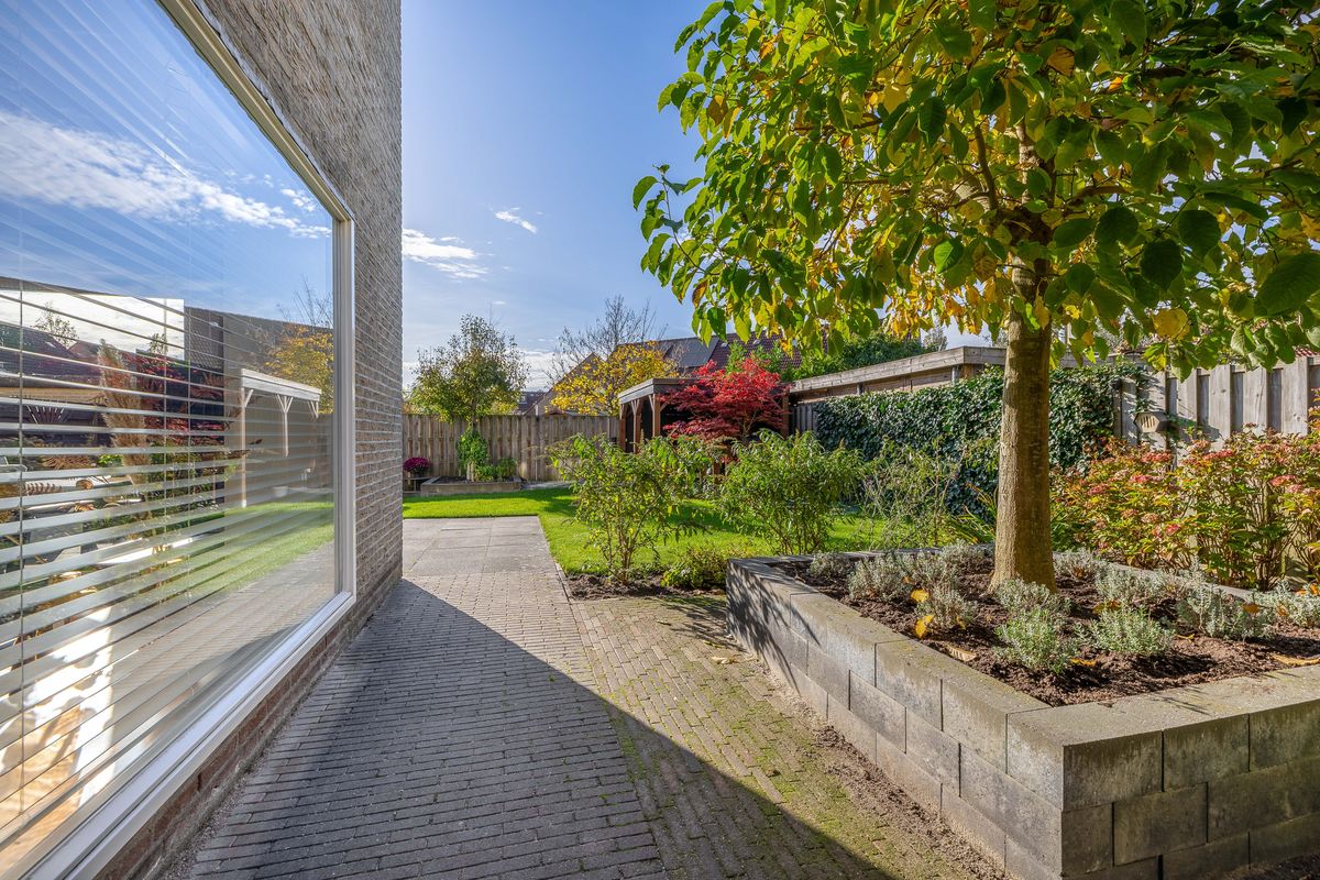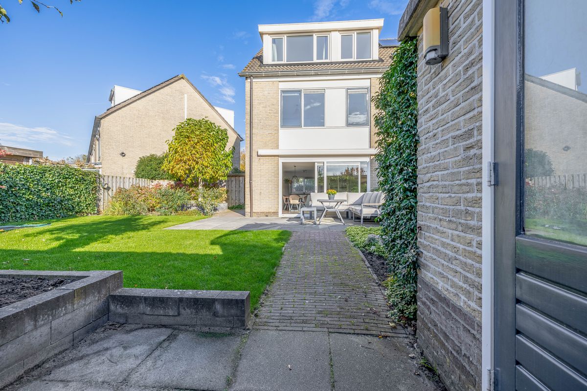 Nog even terug naar de tuin, want die verdient extra aandacht. Deze is namelijk heerlijk ruim en biedt veel privacy, doordat er direct achter de woning geen andere huizen staan maar een speelplaats. De ligging op het zuidwesten zorgt ervoor dat je hier de hele dag van de zon kunt genieten — perfect voor zonliefhebbers!