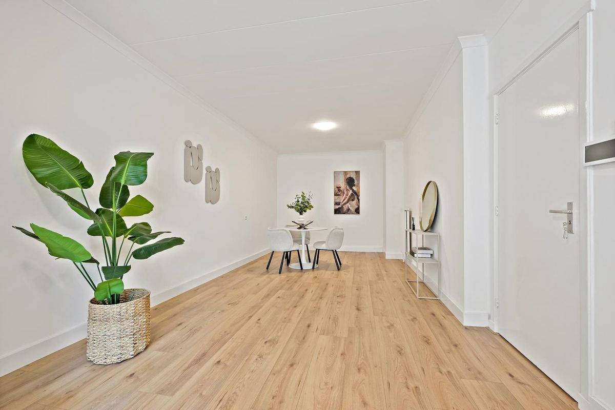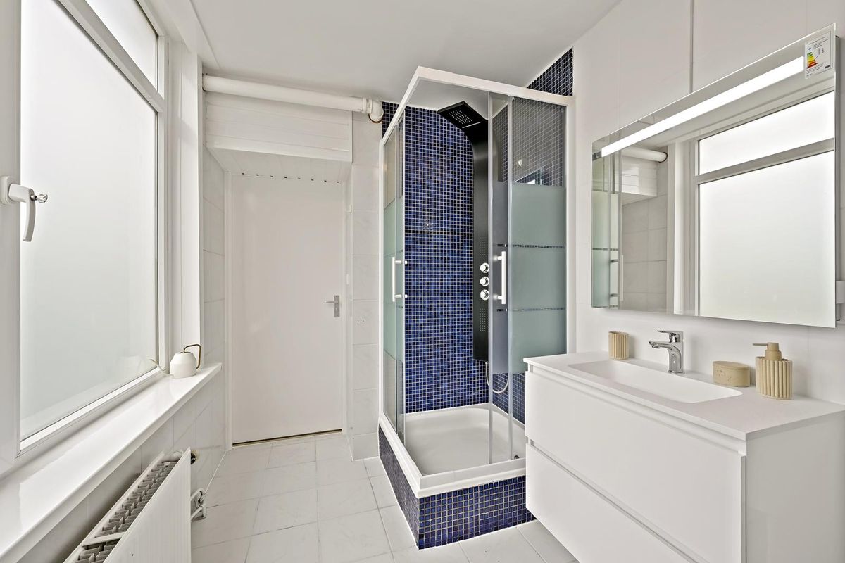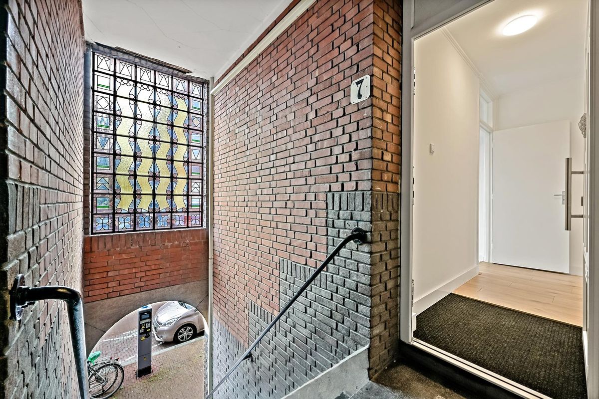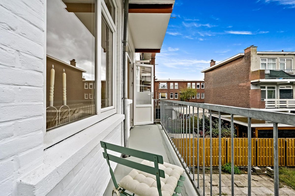 Haags portiek naar de eerste verdieping. Entree van de woning met ruime berging voorzien van meterkast (slimme meter) en separaat toilet. De eerste slaapkamer bevindt zich aan de voorzijde en biedt leuk uitzicht over het plein. De ruime woon-/eetkamer beschikt over een schouw en karakteristieke erker. Aan de achterzijde bevindt zich de nieuwe keuken, uitgerust met een koel-vriescombinatie, inductiekookplaat, vaatwasser en afzuigkap. Via de keuken is er toegang tot de badkamer met ligbad, douchecabine en wastafelmeubel, alsmede tot het balkon met uitzicht over de binnentuin van de omliggende appartementen. De tweede slaapkamer ligt eveneens aan de achterzijde.