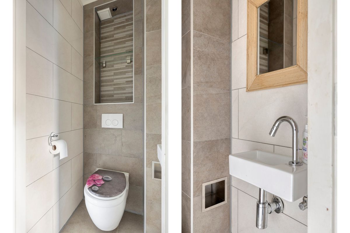 Via de binnenhal bereik je de voorslaapkamer, de badkamer, wastafel en wasmachine-aansluiting, de separate toiletruimte en de achterslaapkamer.