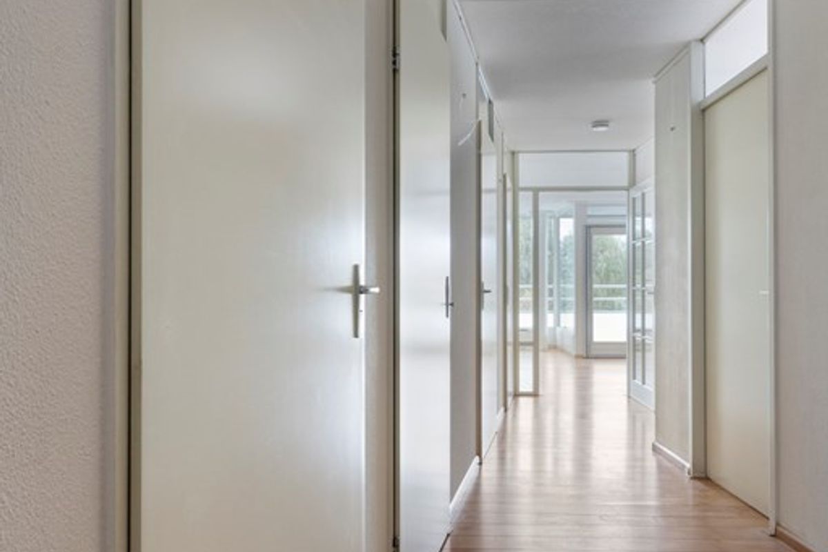Entree van de woning, hal met toilet en meterkast, inpandige berging met wasmachine-aansluiting, ruime badkamer, 2 ruime slaapkamers, sfeervolle woonkamer met een nette open keuken. Vanuit de woonkamer is er toegang tot het fijne balkon met een heerlijk vrij uitzicht.