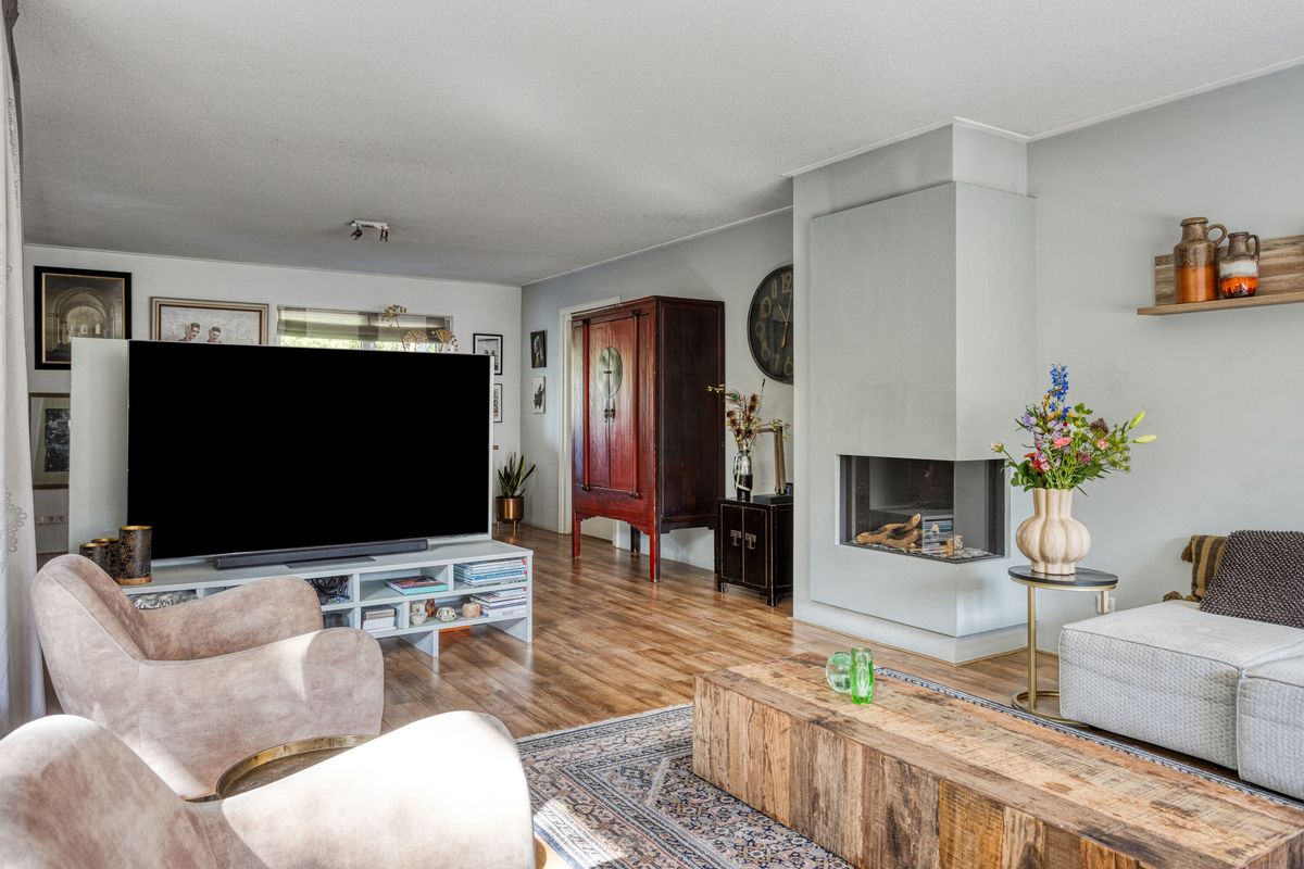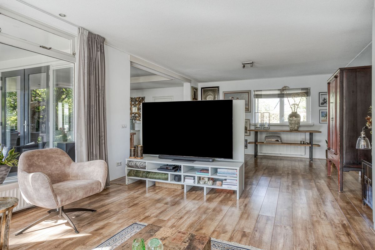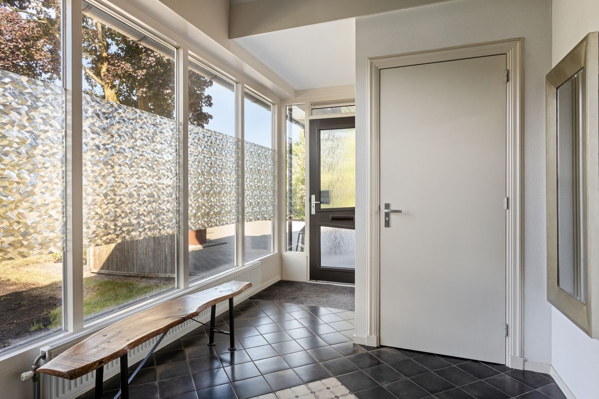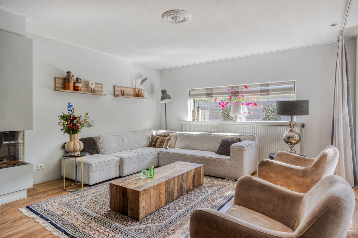 De tuin rondom de woning biedt volop privacy en groen, mede dankzij de gunstige hoekligging en lage bebouwing in de directe omgeving. Dankzij de verschillende terrassen – waaronder een overdekt terras direct grenzend aan de woonkamer – is er altijd een fijne plek om te zitten. De royale oprit biedt ruimte aan meerdere auto’s en de indeling van de woning zorgt ervoor dat je aan alle kanten verbonden bent met buiten.