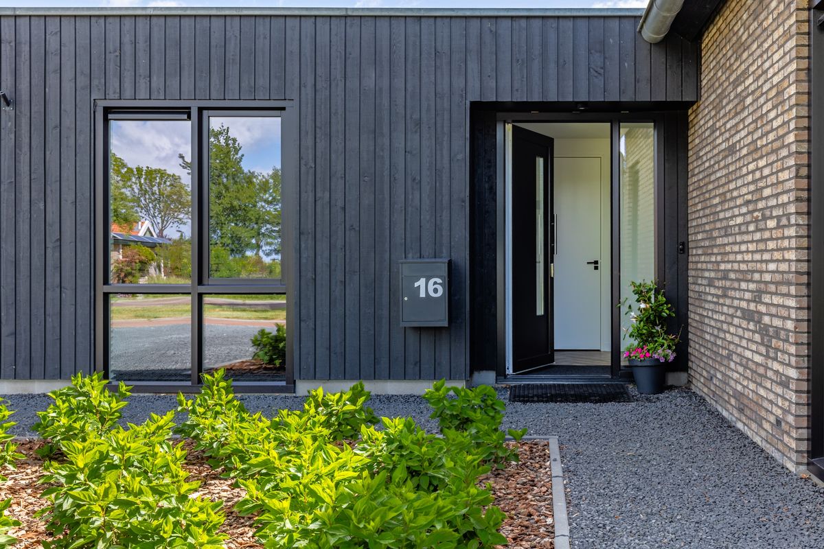 De woning beschikt over een strak aangelegde tuin op het zuiden. Je geniet hier van het vrije uitzicht en een beschut terras. Daarnaast is er een vrijstaande berging met betonvloer en elektra, perfect voor fietsen, tuingereedschap of hobbyruimte. Het ruime grasveld aan de voor en zijkant wordt keurig gemaaid door de Husqvarna robotmaaier.