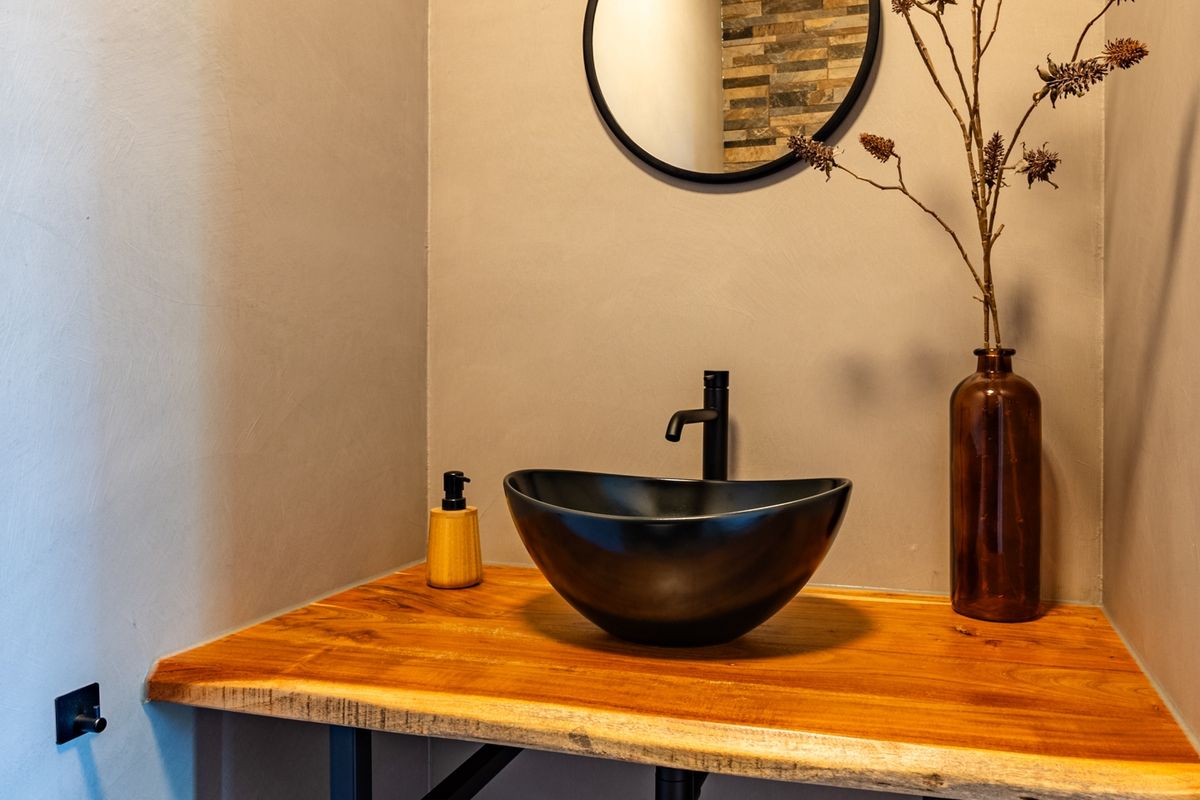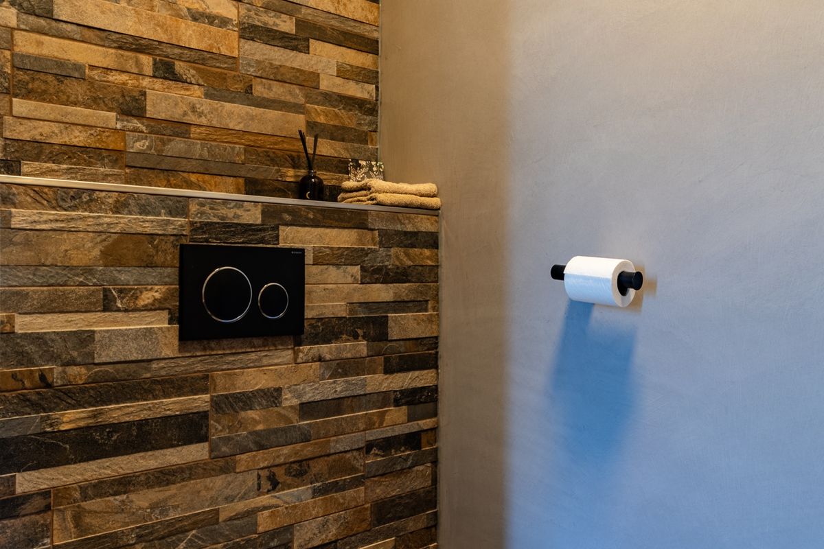 • Luxe toilet (2x) en badkamer voorzien van betonciree en inbouwkranen