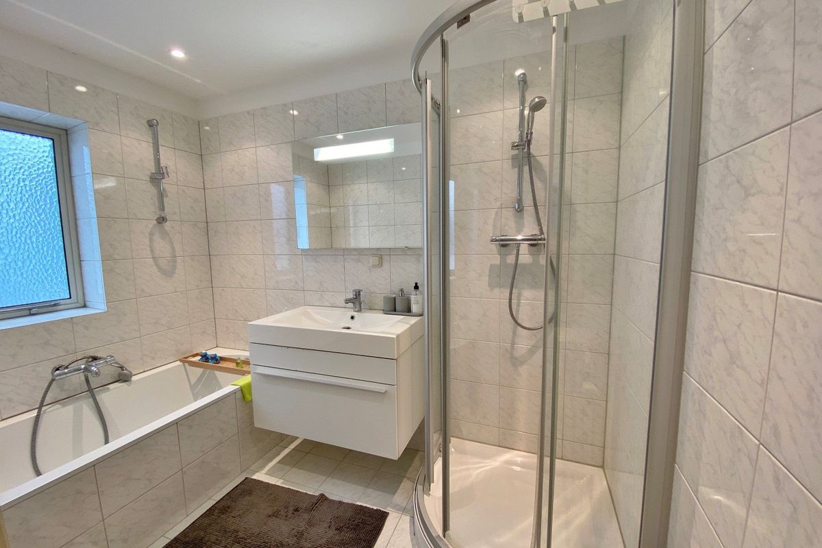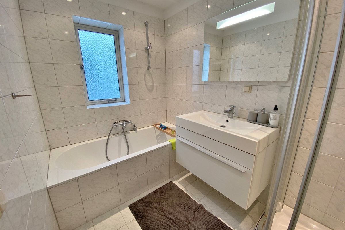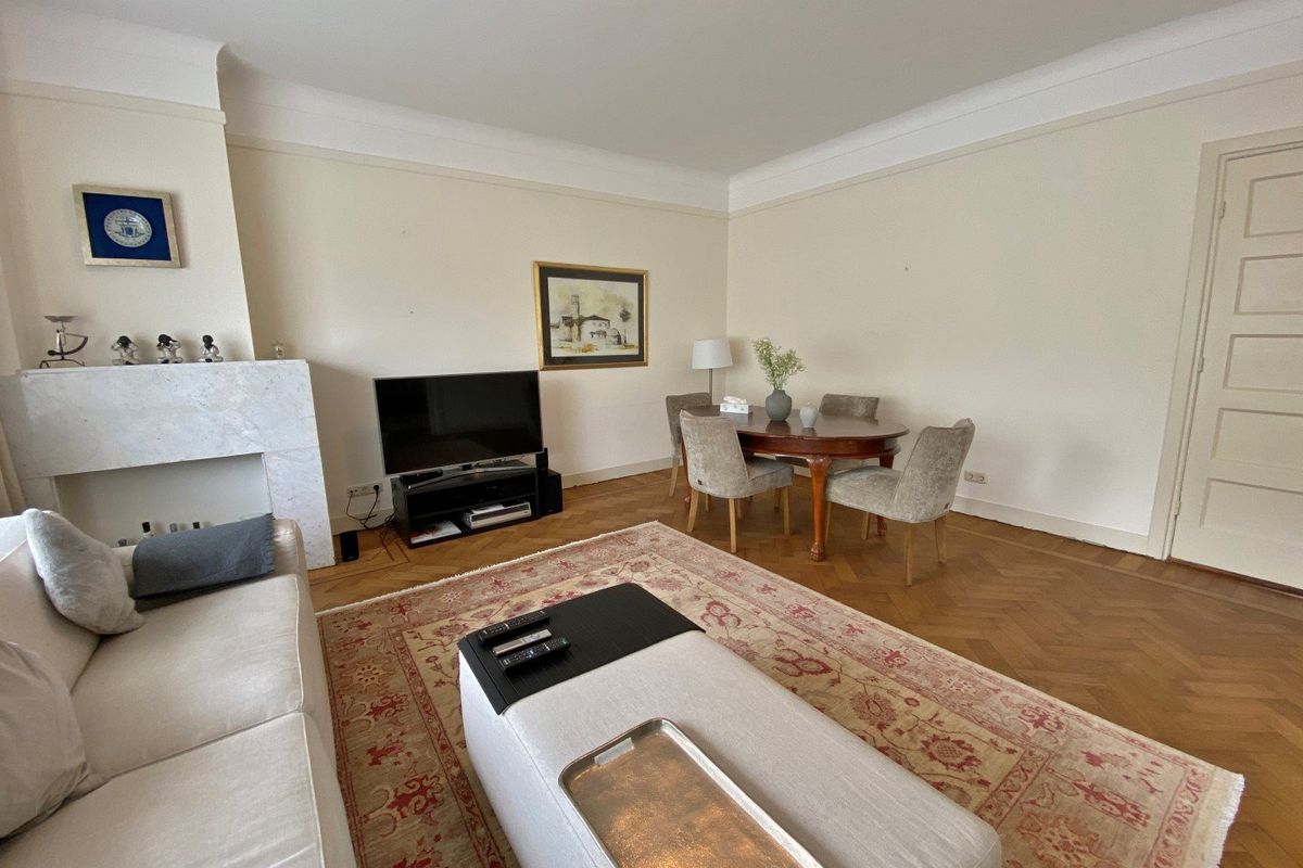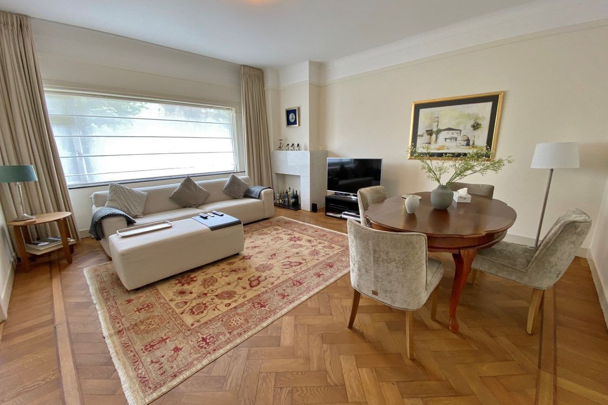 Situated on a small park, you will find this furnished 4 room (1/2 bedrooms) ground floor apartment of 102m² with a balcony at the front, a bicycle storage room and private parking.