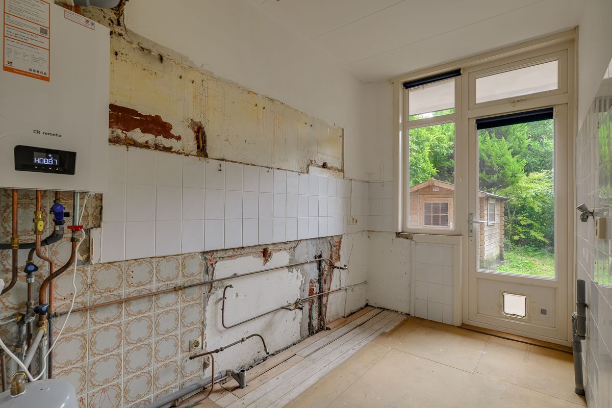 Aan de achterzijde bevindt zich de ruimte die wacht op jouw droomkeuken. De voorbereidingen zijn al getroffen, zodat je direct aan de slag kunt. Open de deur en je loopt zo de zonnige achtertuin in. Hier ruik je het groen, hoor je de vogels en voel je de warmte van de middagzon op je huid. Een tuin waar je kunt barbecueën met vrienden, een cappuccino kunt drinken met je favoriete boek óf gewoon even met je blote voeten in het gras kunt staan.