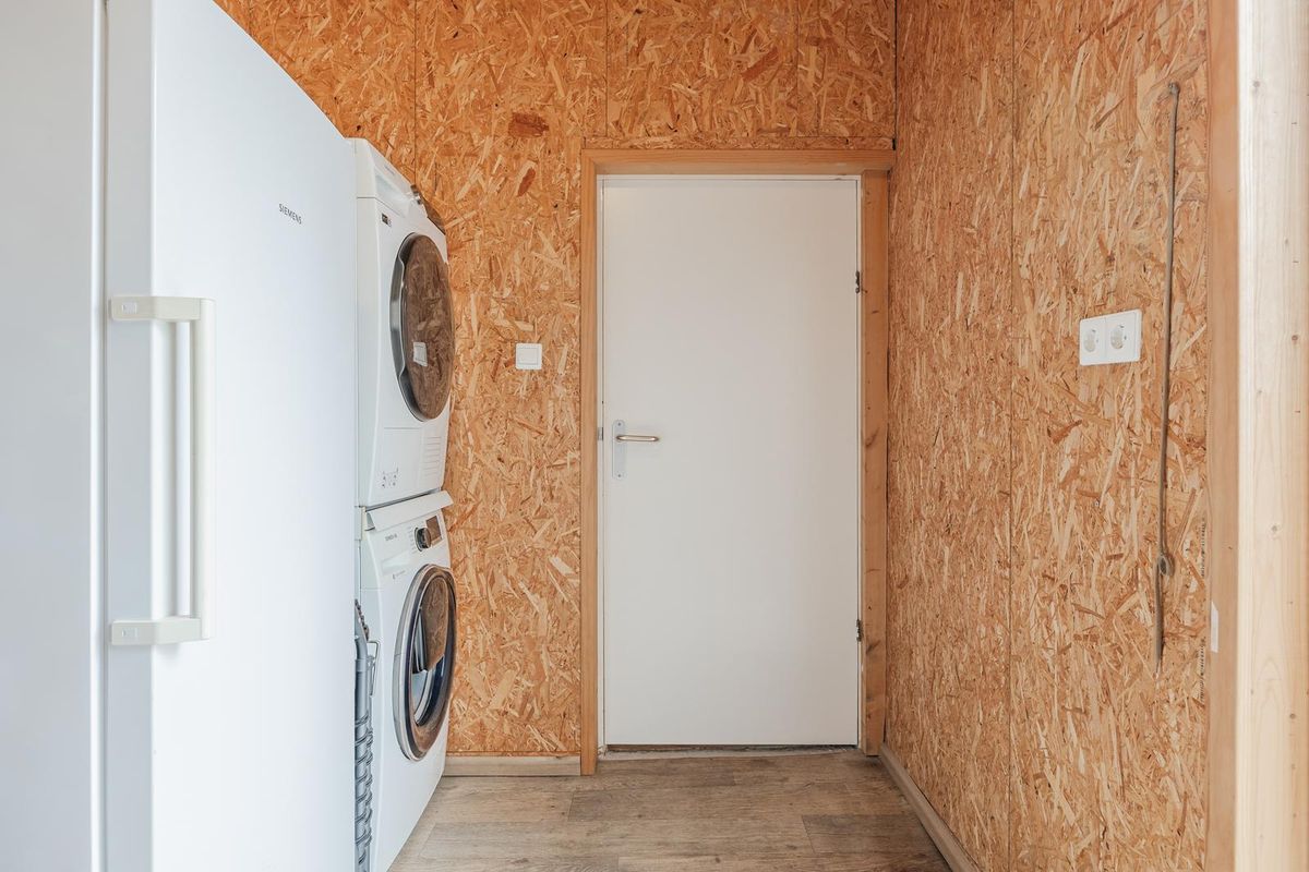 In de praktische bijkeuken bevinden zich de wasmachine- droger aansluiting en de vriezer. Via de bijkeuken kunt u naar de achtertuin.
