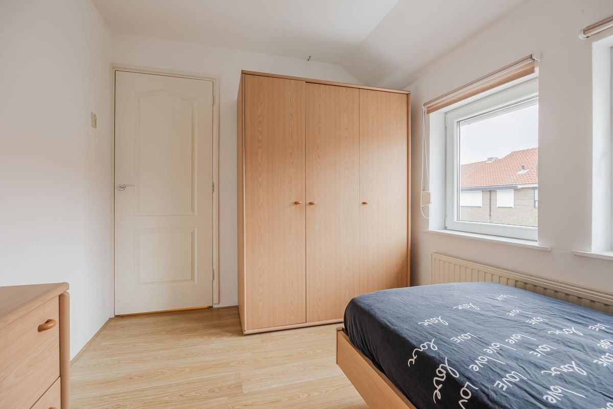 Op de 1e verdieping zijn 3 slaapkamers met een laminaatvloer en veel lichtinval door de grote raampartijen.
