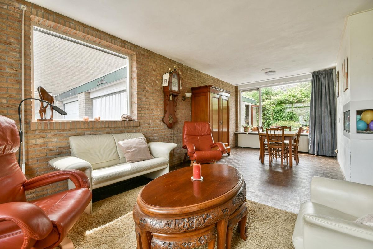 • Lichte woonkamer met vrij uitzicht op de diepe achtertuin