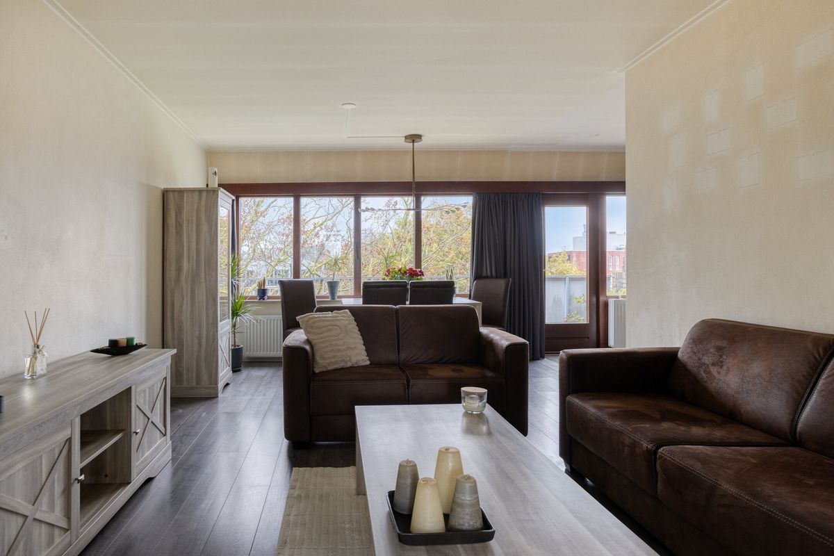 Vanuit de woonkamer heb je toegang tot het balkon over de volledige breedte van het appartement – een heerlijke plek om te ontspannen in de zon. Vanuit hier heb je een prachtig uitzicht op het Julianapark en de omgeving.
