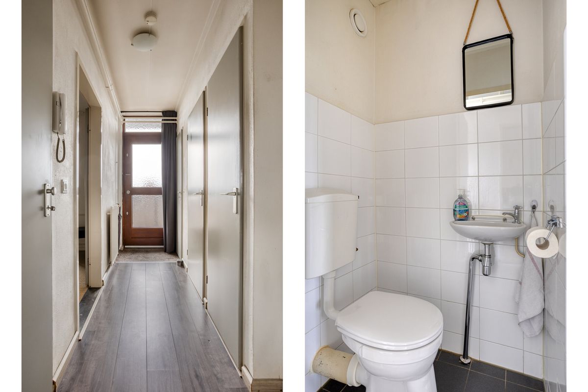 In de hal vind je de vernieuwde meterkast, de cv-opstelling (HR-combiketel uit 2015), het toilet met closet en fonteintje, en een handige berg-/garderobekast.