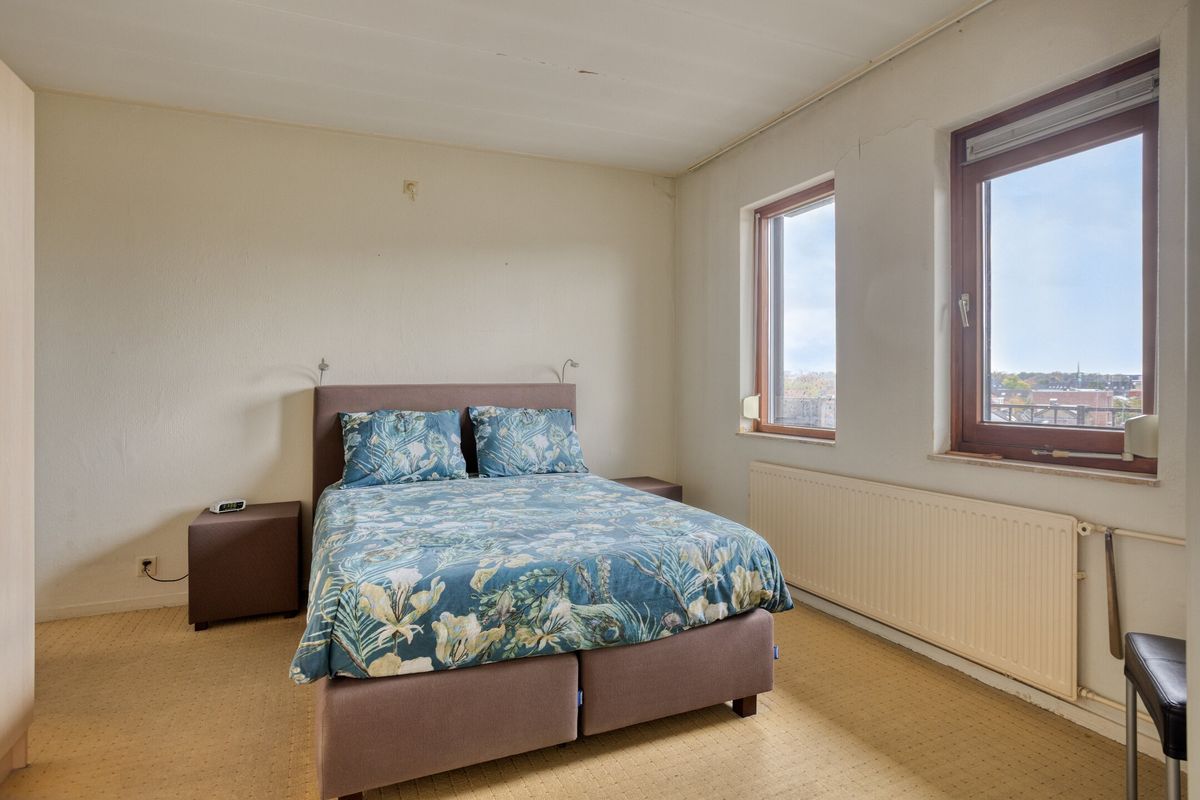 De slaapkamer is ruim van opzet en aangenaam licht door de twee grote ramen. Vanuit hier heb je direct toegang tot de badkamer.