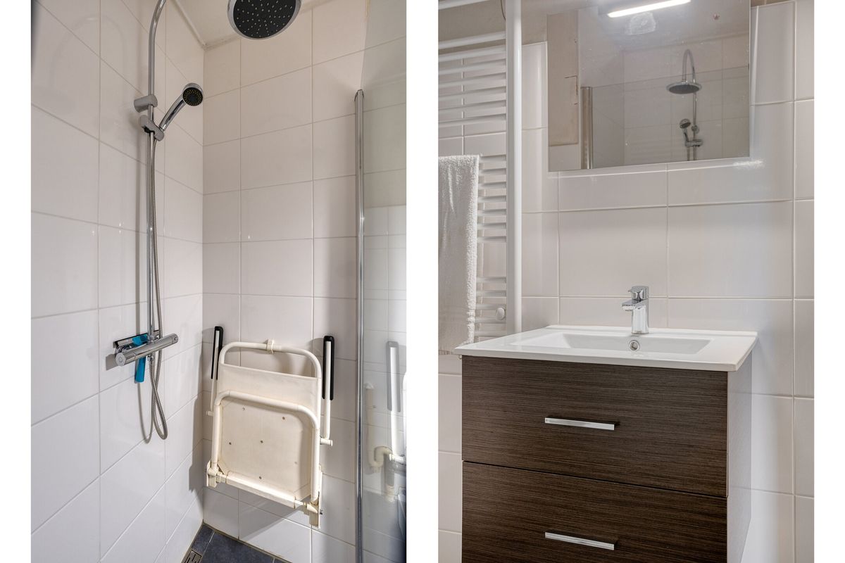 De deels betegelde badkamer is ongeveer 5 jaar geleden vernieuwd en beschikt over een inloopdouche, wastafelmeubel en een aansluitpunt ten behoeve van de wasapparatuur.