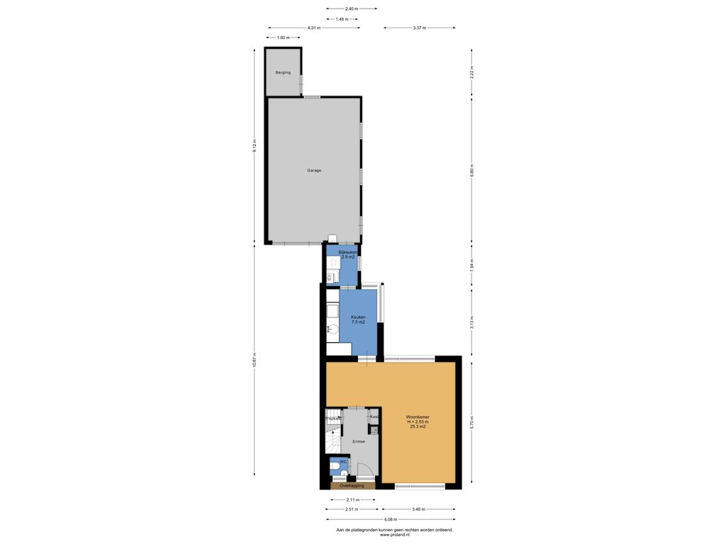 Entree, hal, toilet, woonkamer dichte keuken met inbouwapparatuur, bijkeuken en via de bijkeuken naar de ruime garage. Via buitenom naar de berging, leuke onderhoudsarme tuin.