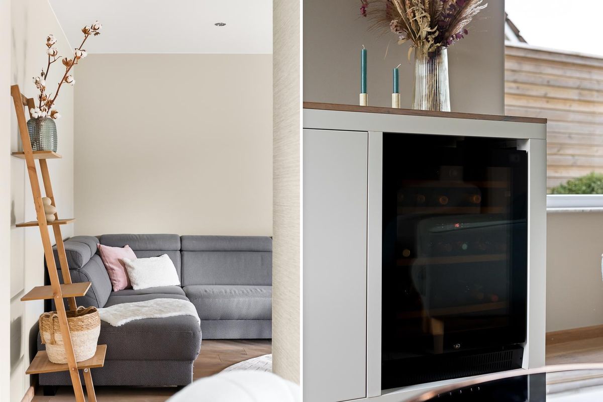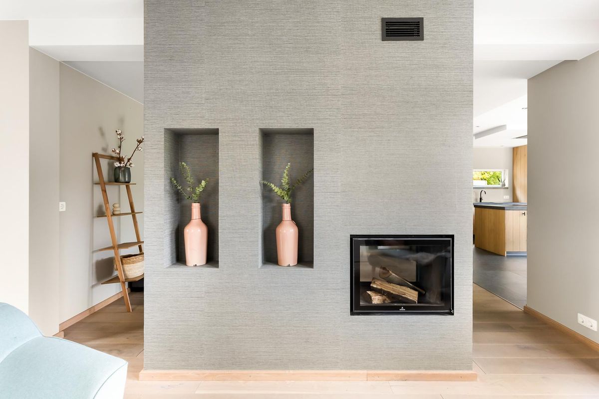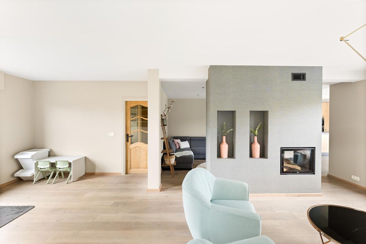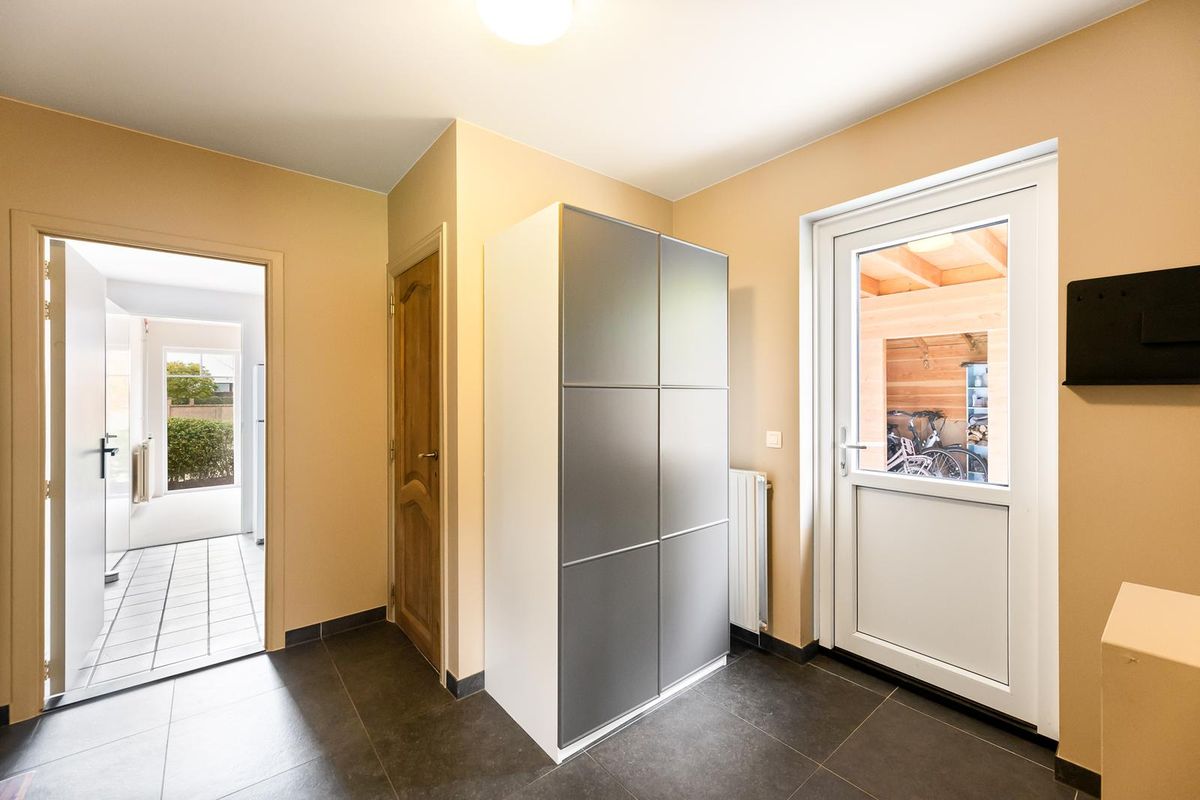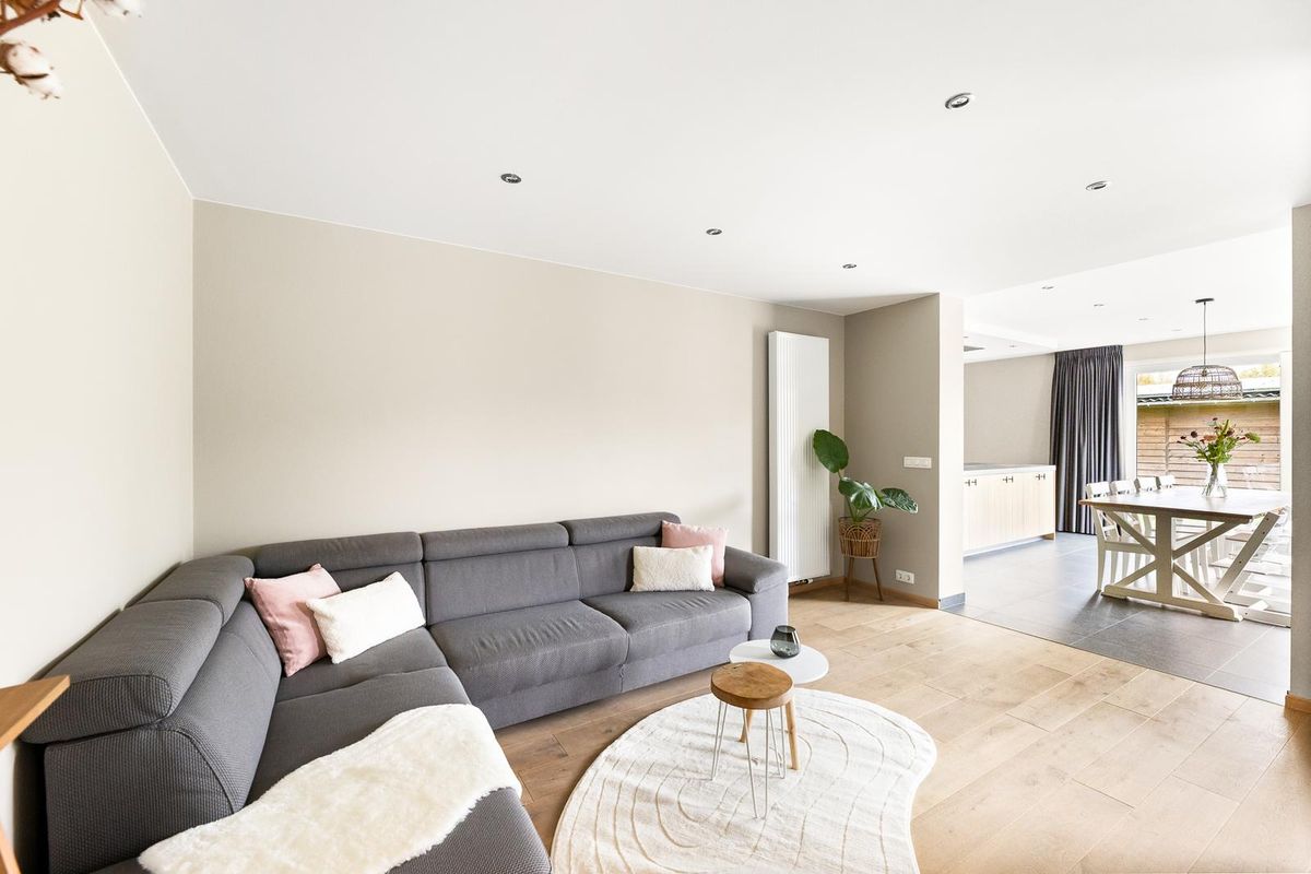 De luxe woonkeuken is een echte blikvanger: strak, warm en praktisch tegelijk, voorzien van moderne inbouwapparatuur, veel kastruimte en schuifdeuren naar het terras. Direct grenzend aan de keuken bevindt zich een gezellige overkapping – ideaal om ook op minder zonnige dagen buiten te eten of te ontspannen.
