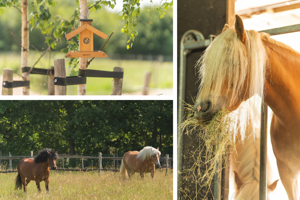 - eetbare hagen op het perceel, speciaal geselecteerd voor paarden.